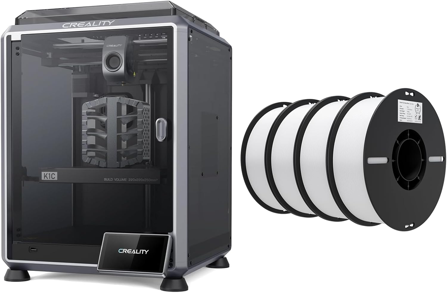 Creality K1C 3D Printer Bundle with PLA Filament 1.75mm 4 Packs(4 White)