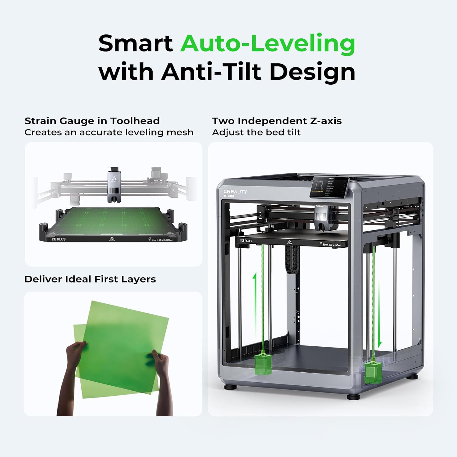 13.78×13.78×13.78in Large Printing Size – The K2 Plus Combo boasts an impressive printing size of 350×350×350mm, allowing for multiple models to be printed simultaneously, significantly increasing printing efficiency. This plus format empowers larger objects or larger batches, easily satisfying your ever-expanding 3D printing aspirations