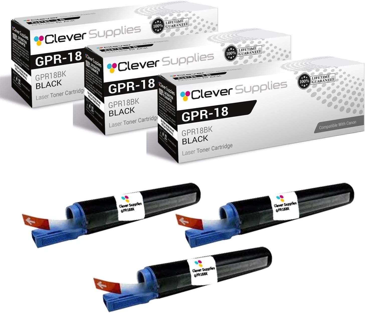 Clever Supplies Compatible Replacement for Canon GPR-18 0384B003AA 2016 2018 2020 2022 2025 2030 2018i 2020i 2022i 2025i 2030i Black Toner Cartridge 3 Set