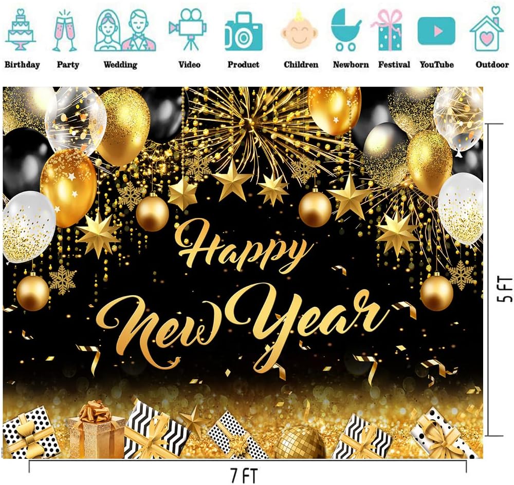 Package: 1PCS 7x5ft; New Year Photography Backdrop , NOT Included Stand,Pole Pocket or Clips.