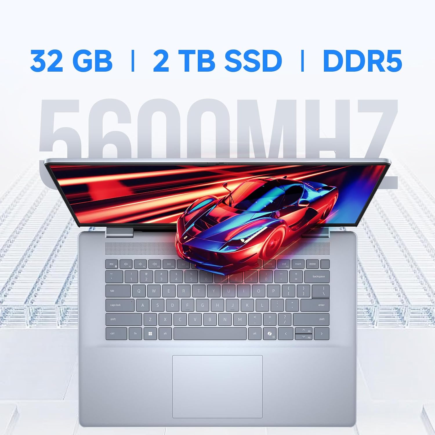 AI Capable Powerful Performance: The Dell Inspiron 16 laptop is equipped with a powerful processor with excellent performance. The Intel Ultra 7 155H EVO runs at up to 2.5 GHz and has 16 cores (6 performance cores and 8 efficiency cores) and 22 threads. The Intel Ultra 7 processor provides three dedicated engines (CPU, GPU and NPU) to help unleash the power of AI, create immersive graphics experiences, and achieve high-performance low-power processing