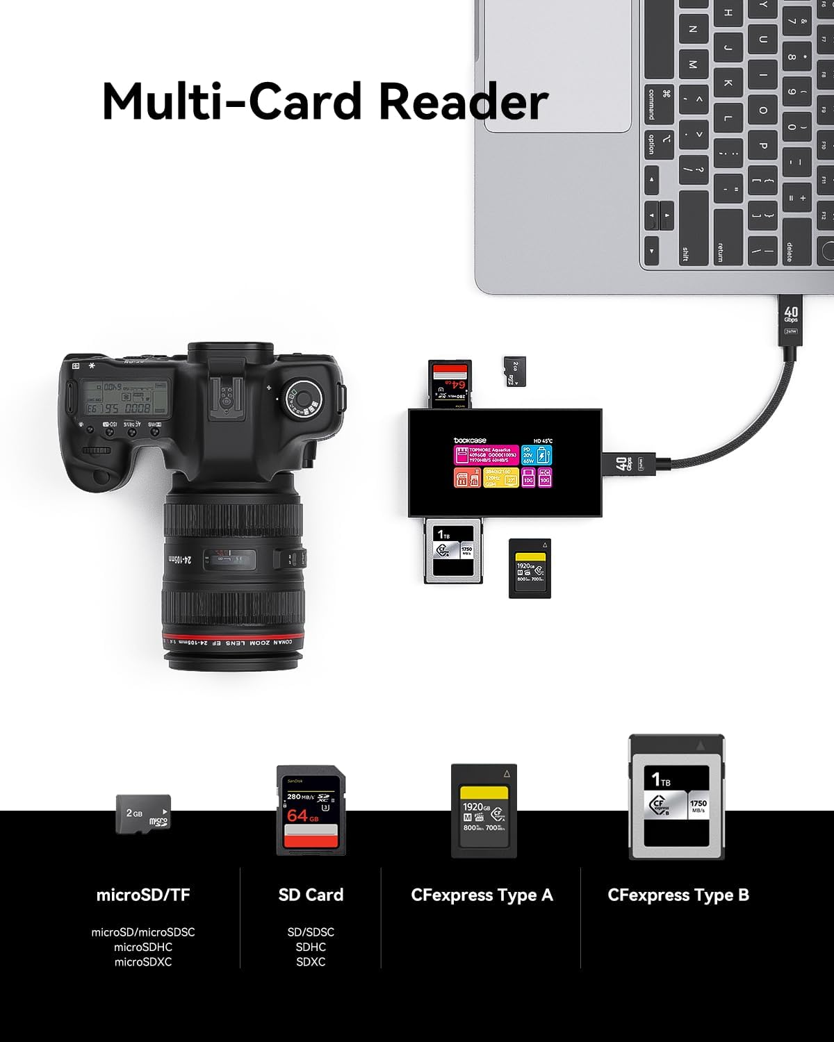 DOCKCASE Studio: A combination of a smart hub and a card reader is essential for photographers and professional users who need a CFexpress Type A & Type B card slot, which is missing in hubs in the market. Say goodbye to the hassle of carrying multiple devices, and experience seamless efficiency and enhanced productivity like never before