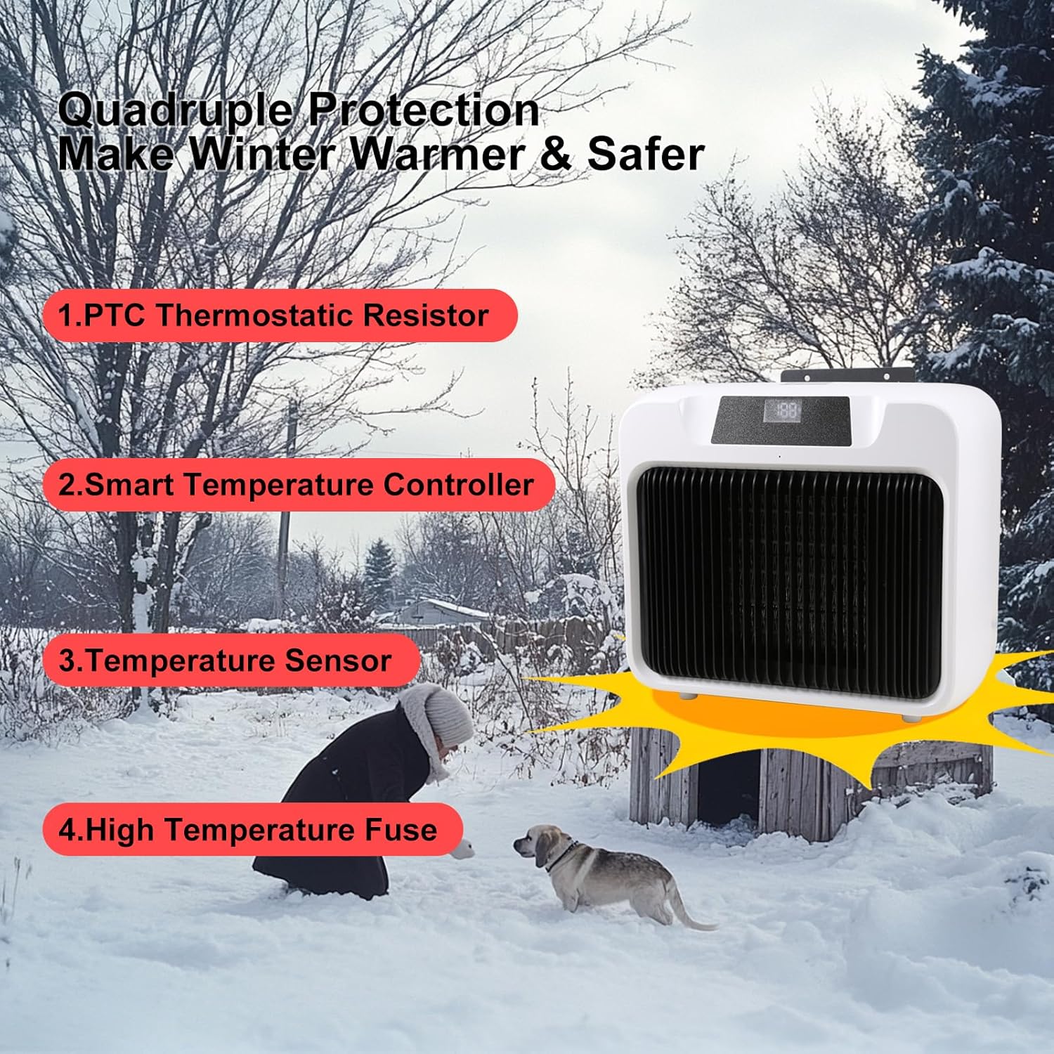 Overall, it's a pretty basic heater with only 2 temp ranges and a relatively short cord. However, the bracket holds well against wood, so it's certainly mountable up high, and it shuts off when it reaches the upper limit of the range. You can't control it wirelessly so there's no remote or app, but it works just fine as a stand-alone device. It even has little rubber feet so it doubles as a portable heater. Brilliant for an ice-fishing hut if you're got the right power supply. Four stars from me.