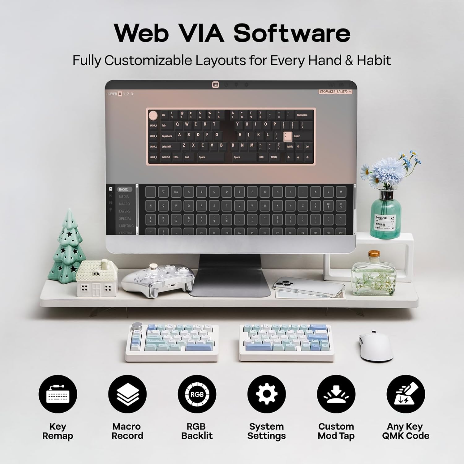 Powerful QMK/VIA Configure: Map keys or set macros for productivity, accessibility or fun, and enjoy the highly customizable Split70 wireless keyboard that tailors to your personal and professional needs. Connect to VIA software with custom JSON file and configure with maximum freedom in real-time display.