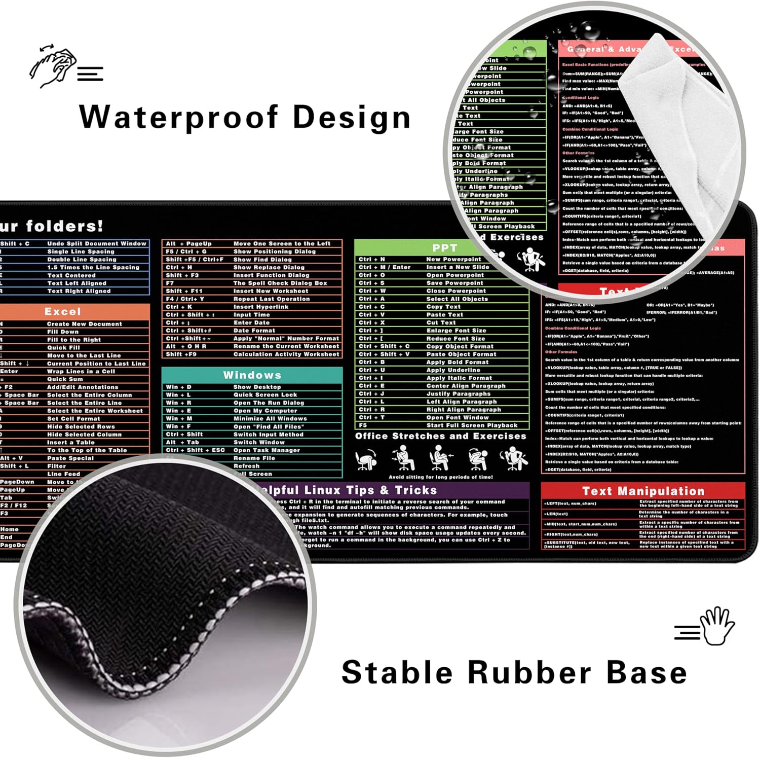 Non-slip Rubber Base: The anti-slip natural rubber base firmly holds the pad in place, which can prevent the mouse pad from sliding on the desktop. Just immerse yourself in your work or game without worrying about annoying mouse pad movement