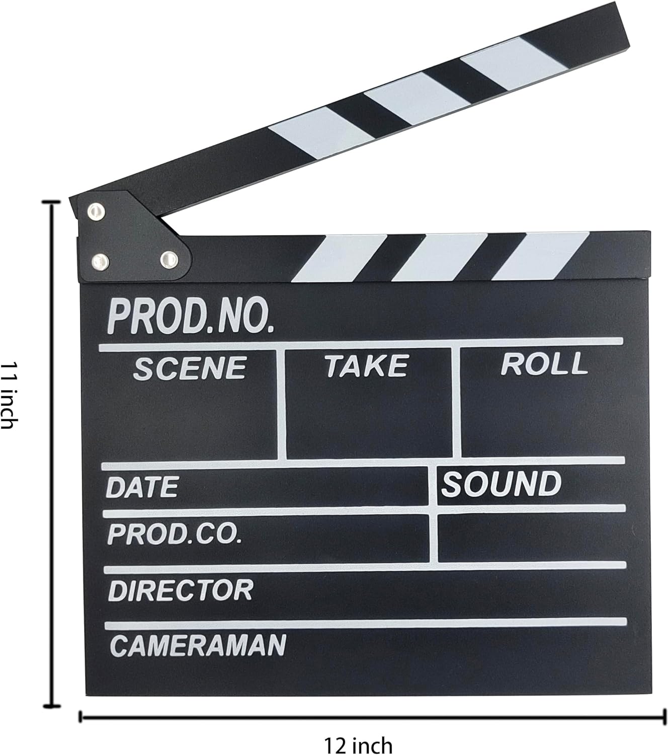 This Film Directors Clapboard 12″x11″ Hollywood Clapper Board Wooden Film Movie Clapboard, Come with 5 pcs Erasable Pen.