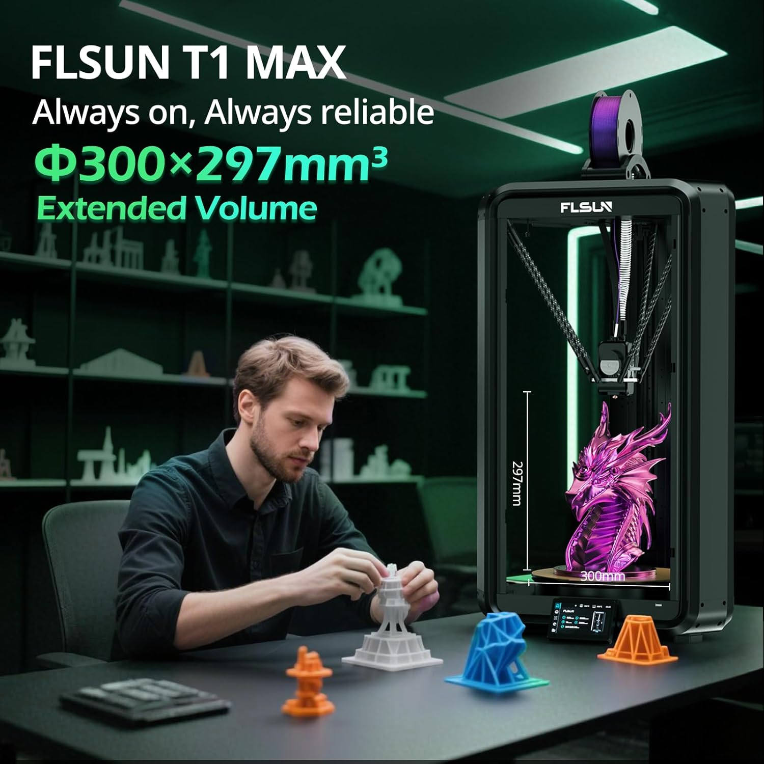 Smart Ecosystem for Professional Workflows: Our Flsun T1 Max seamlessly integrated with WiFi 6 for lightning-fast file transfers, Flsun Slicer for optimized G-code, and Flsun World App for remote monitoring and cluster management. Features 99.9% accurate filament detection, OTA firmware updates, and pre-loaded models (dragons, boats) to jumpstart creativity.