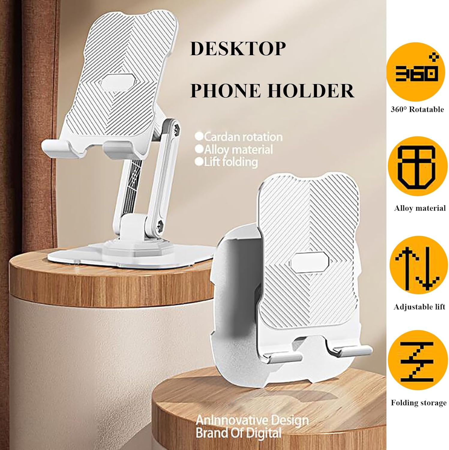 Foldable Phone Stand for Desk 360 Rotatable Height Adjustable Cell Phone Holder for 4-10in Smartphones and E-Readers (White)