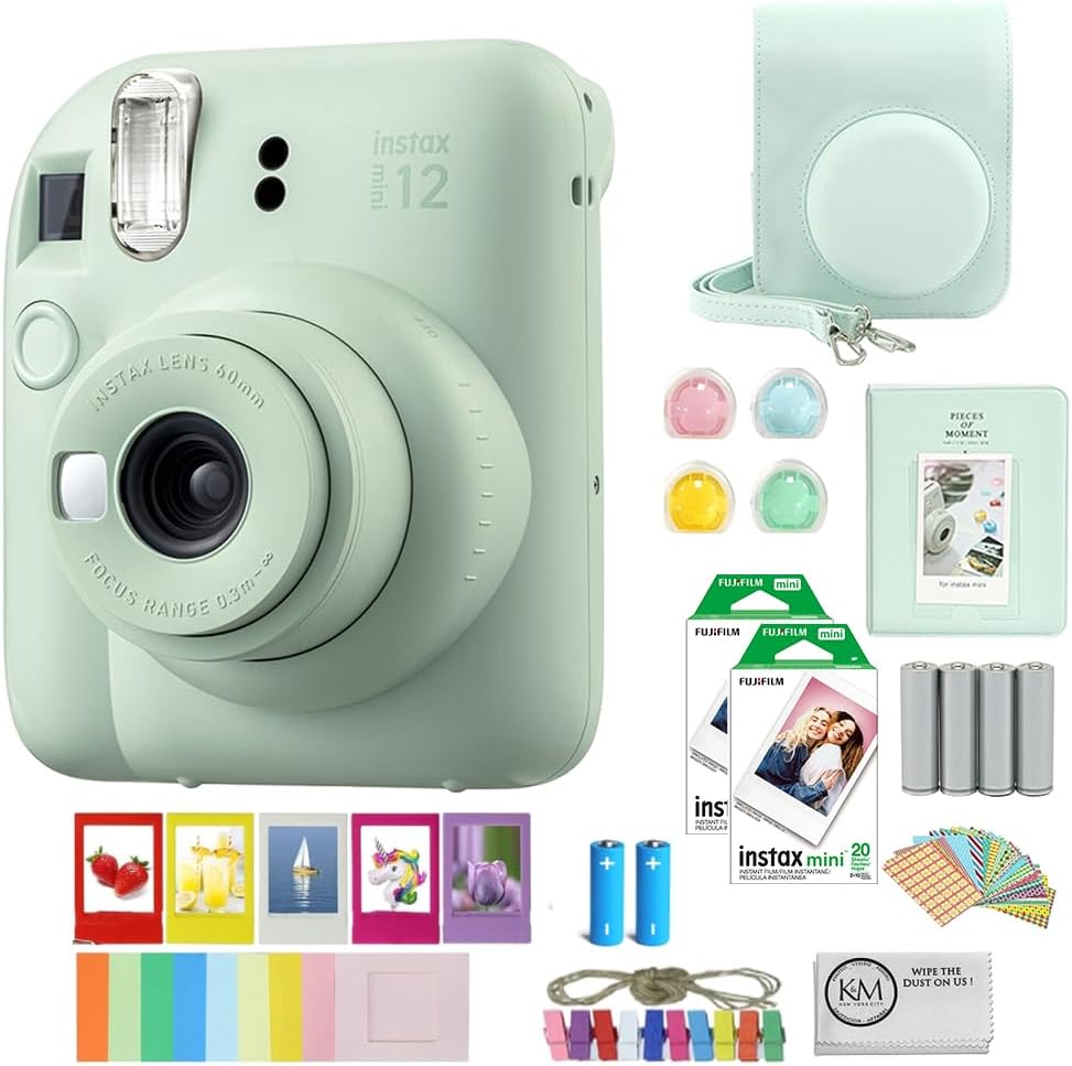 [1] FUJIFILM INSTAX MINI 12 Instant Film Camera | Mint Green + [2] FUJIFILM INSTAX Mini Instant Film | 20 Exposures + [3] Camera Case w/ Carrying Strap + [4] PhotoBook Album + [5] Color Lens Set (4 Colors) + [6] Creative Frame Set (5pcs)