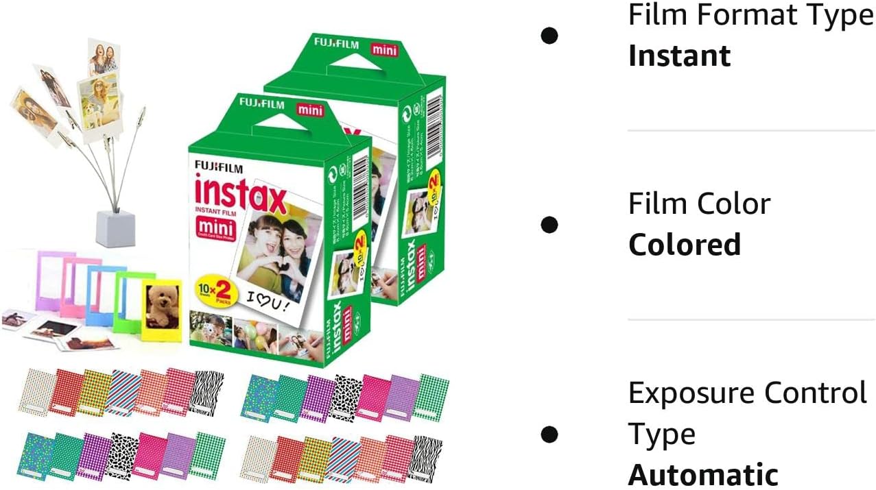 40 Film Works for FUJIFILM INSTAX MINI Cameras Instax Mini film for cameras Mini 8, Mini 9, Mini 11, Mini 90, Mini 70, Mini 50S, Mini 25, Mini HELLO KITTY, & Polaroid PIC 300 Instant Film Cameras