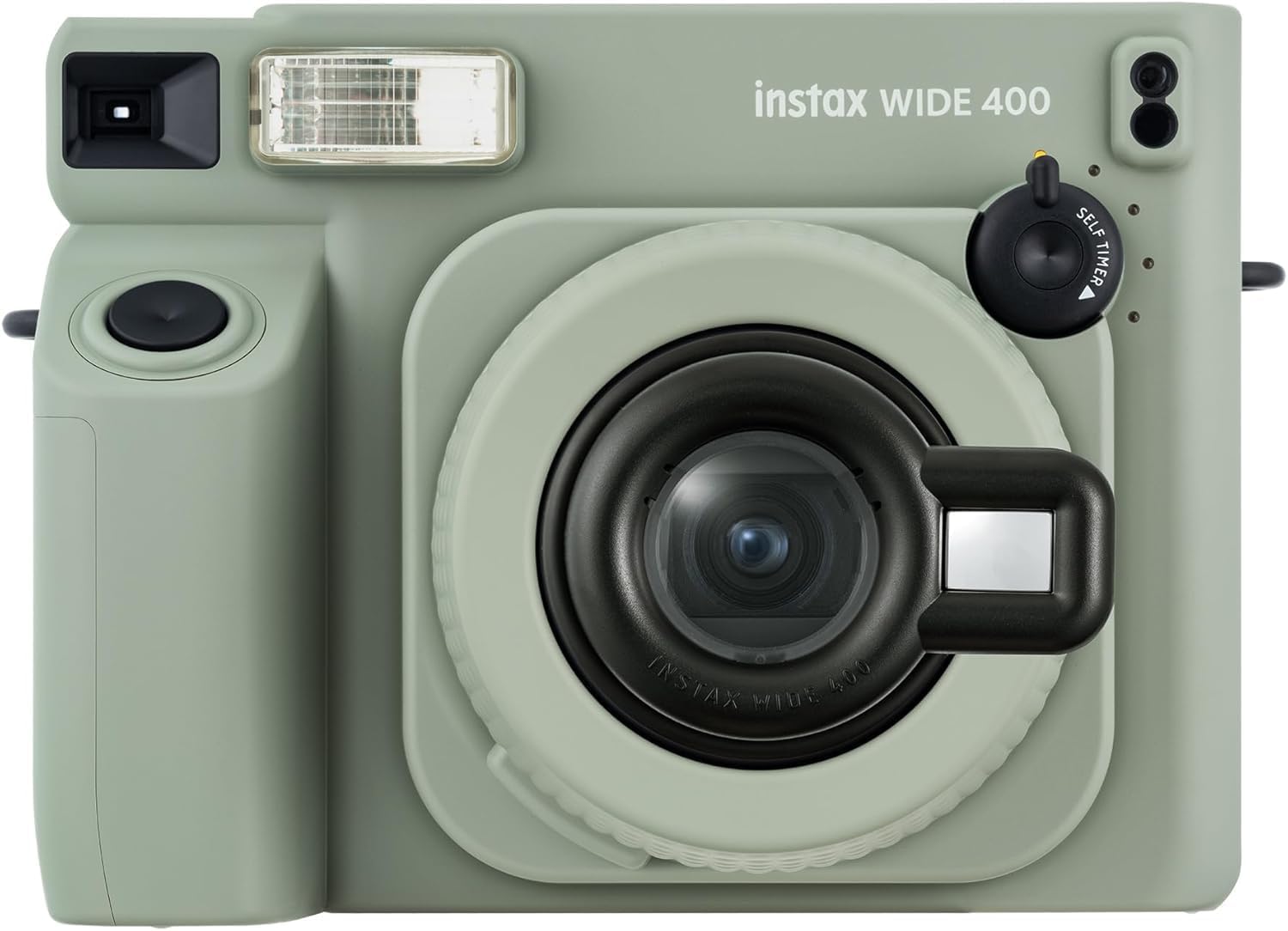 The INSTAX WIDE 400 instant camera, a reimagined WIDE format instant camera that lets you explore all things wide. Featuring Automatic exposure and Flash control, the INSTAX WIDE 400 instant camera takes high-quality images, while you focus on filling the wide frame to perfection. With the INSTAX WIDE 400 instant camera’s iconic analog-style Self-timer lever, the whole group can fit in the shot. By rotating the dial, you can set two second increments of up to ten seconds, press the shutter button and pose until the magic happens (with the LED countdown, it’s easy to keep track of the time). To get that perfect angle, the INSTAX WIDE 400 instant camera comes with a Camera angle adjustment accessory. With its two height options you can pick the angle you want, slide the Camera angle adjustment accessory under the camera into the custom-fit space, set the Self-timer and step back into the frame. Rotate the lens dial to seamlessly turn the camera on and off and switch between Focus Modes. Normal Mode is your go-to for those everyday must-haves, Landscape Mode is perfect for beautiful landscape shots, and close-ups are easy to take with the included Close-up lens, putting you right in the heart of the action. Shooting wide shots should be easy! That’s why the INSTAX WIDE 400 instant camera has two easy-to-use framing guides. Look through the viewfinder and you’ll see one for normal and landscape shots, and one for close-up images, both designed to help you compose your image. So, when adventure calls, go wide. The understated Green colored body makes the INSTAX WIDE 400 instant camera look ready for action, complete with the included Shoulder strap, to keep your camera easily at hand, when on the go. There’s even a built-in tripod mount (tripod sold separately) for those who love to journal with photos.