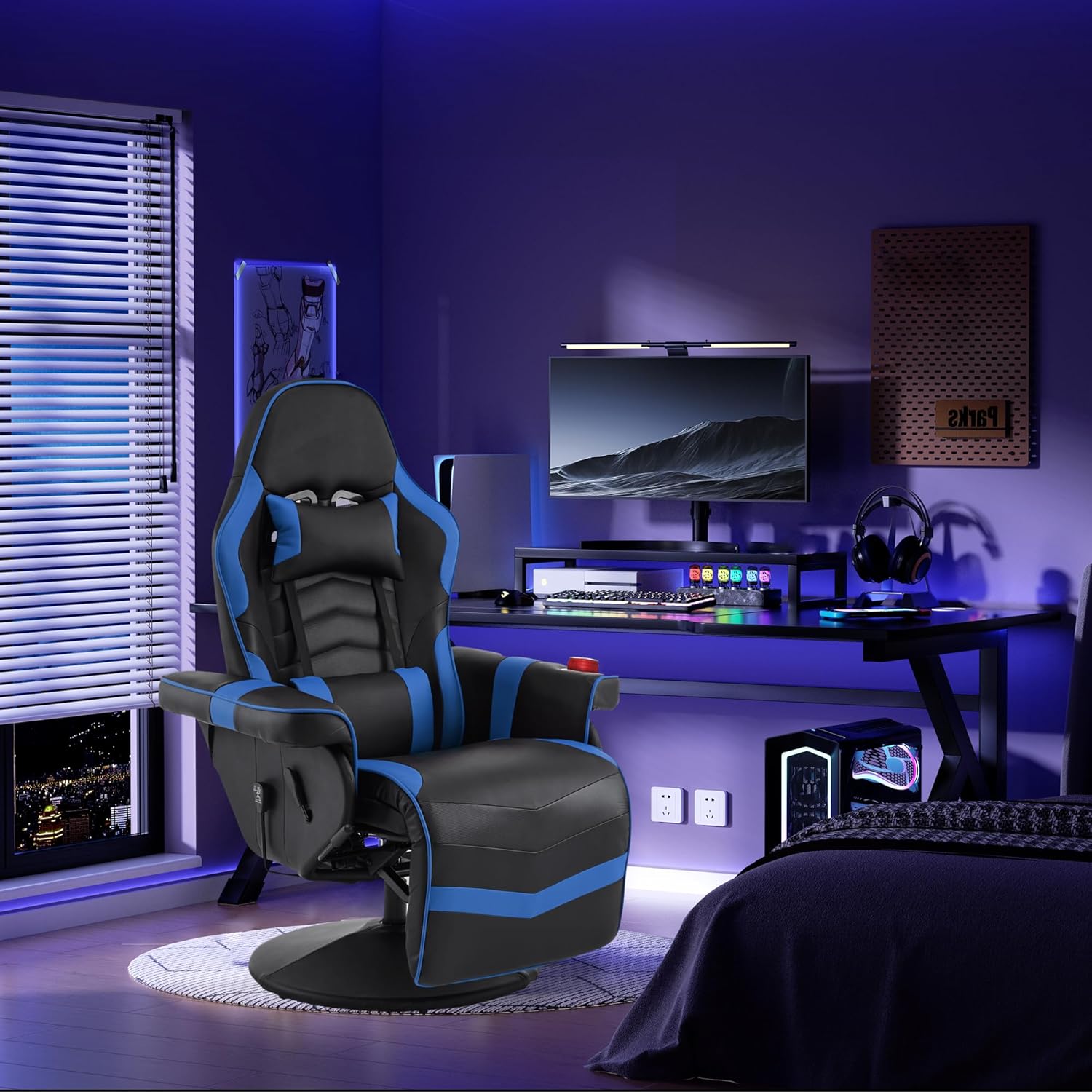 【Gaming Chair with Massager】Our heavy duty gaming chairs are equipped with 4 massage points and 8 modes across 2 targeted areas (back,lumbar), you can adjust massage strength and positions for office working, studying and gaming.