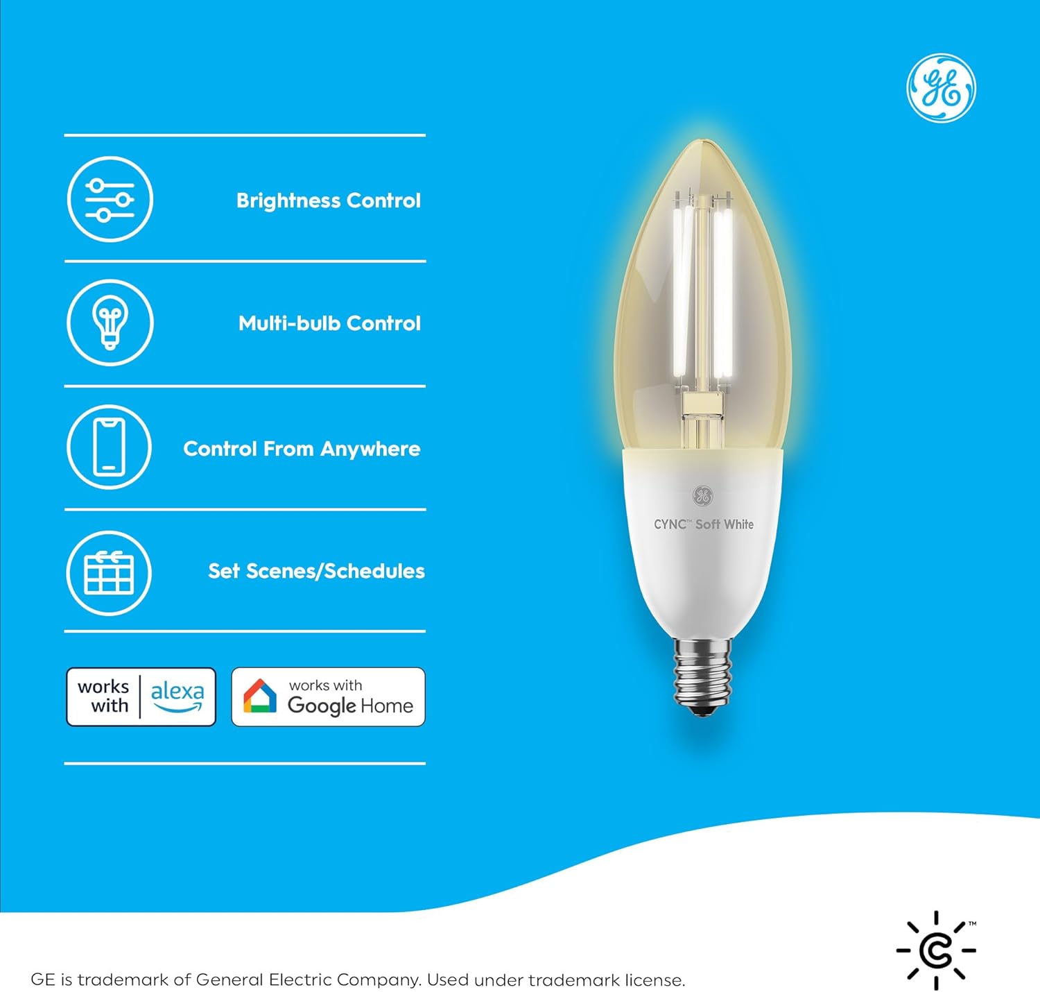 Smart Light Bulb: Combines classic candle style bulb with smart benefits like out of home, voice control, scheduling, and scenes; dimmable LED light bulb with CYNC app but does not work with dimmer light switches