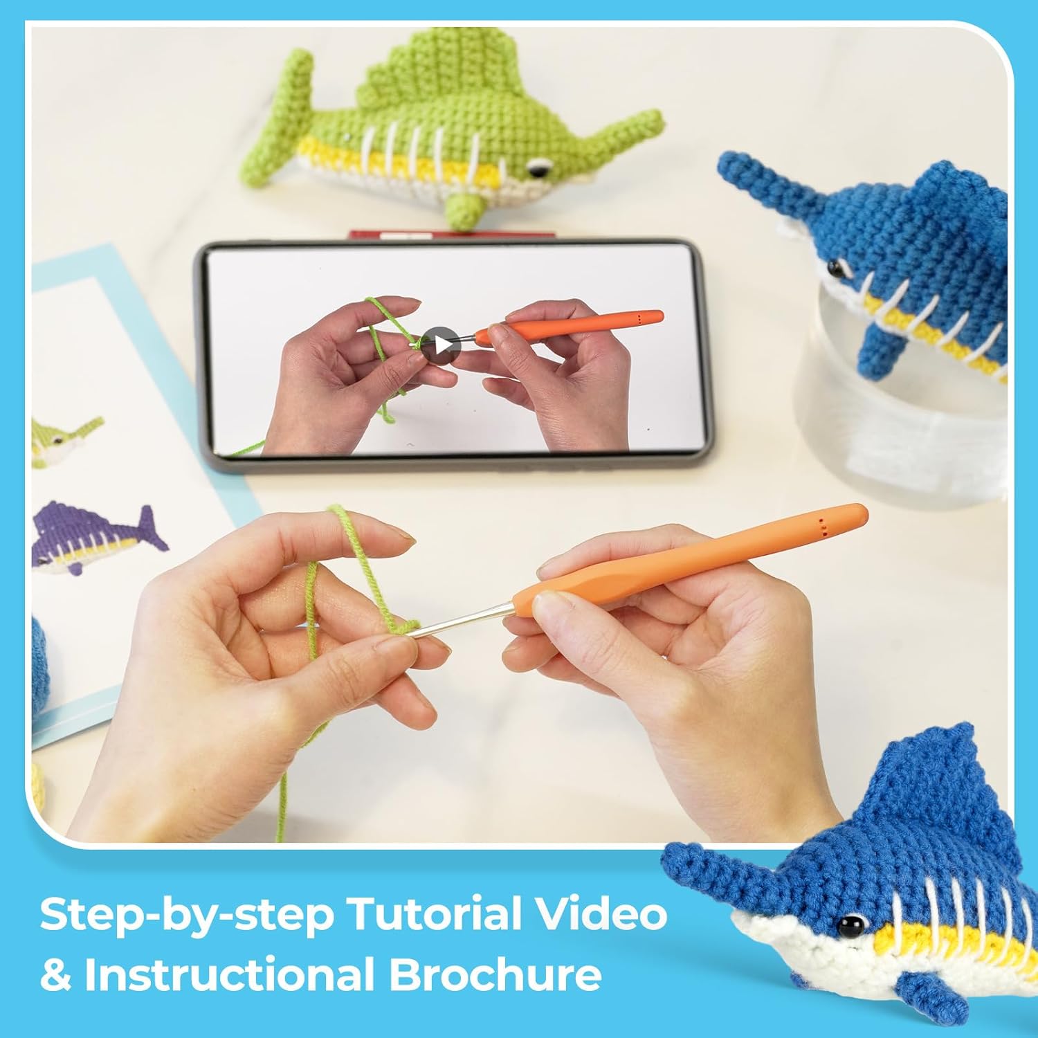 Generic Crochet Kit for Beginners,Sailfish Crochet Starter Animals Kit for Beginners w Step-by-Step Video Learn to Crochet Kit for Adults Kids DIY Knitting Supplies (Sailfish), Ai-01
