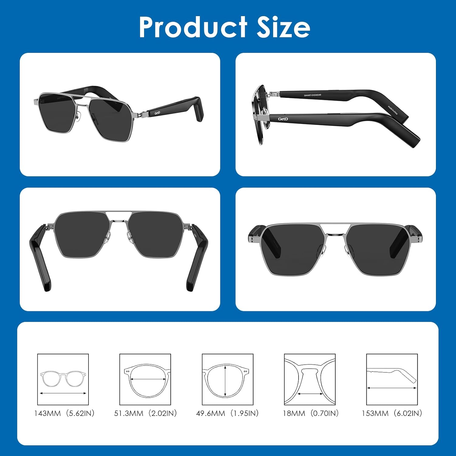 Fashion Sunglasses/High-Quality Materials: GetD smart glasses combine style with durability, crafted from premium materials. The polarized lenses offer excellent light transmittance and color accuracy, reducing glare while maintaining clear vision. The frame and temples feature an oil-sprayed finish, creating a stunning look under sunlight. Enhanced with a specialized coating, these glasses are highly wear-resistant and scratch-resistant, making them both fashionable and long-lasting.