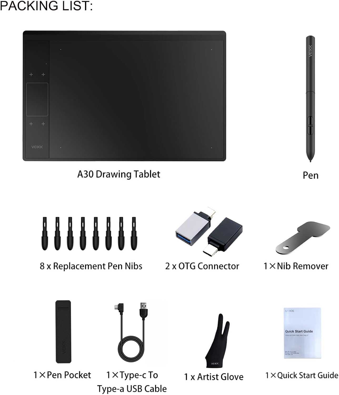 1. VEIKK A30 pen tablet