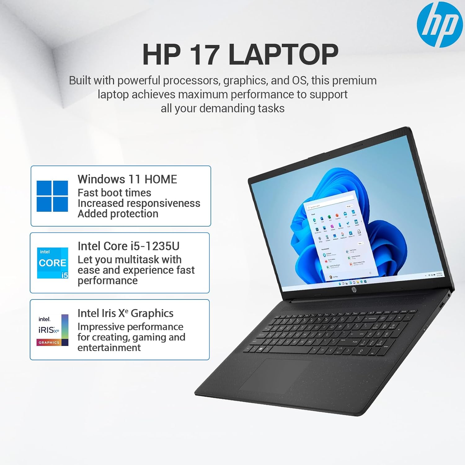 Do your thing, anywhere, with the help of the compact HP Laptops 17 inch. The lightweight HP core i5 laptop is thoughtfully designed for sustainability while blending performance and comfort. Experience reliable performance with an Intel Processor, fast Wi-Fi, and plenty of storage, with a bigger, bolder, picture-perfect display, amazing audio, and advanced collaboration technology