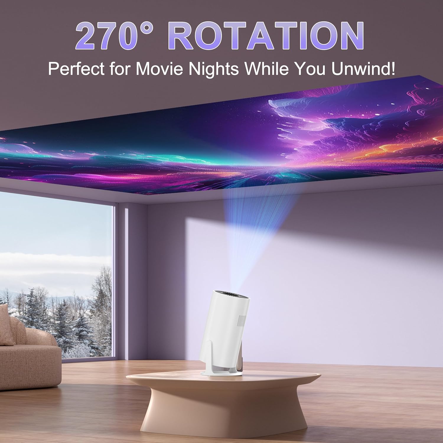🌿【270° Rotatable Stand, Ideal for Spring Family Movie Night】💐🦋 AMX100 mini projector comes with a 270° rotatable stand, allowing you to effortlessly project from any angle, even on ceilings. The electric keystone correction ensures that your portable projector delivers distortion-free, perfectly aligned images every time 🌸✨.