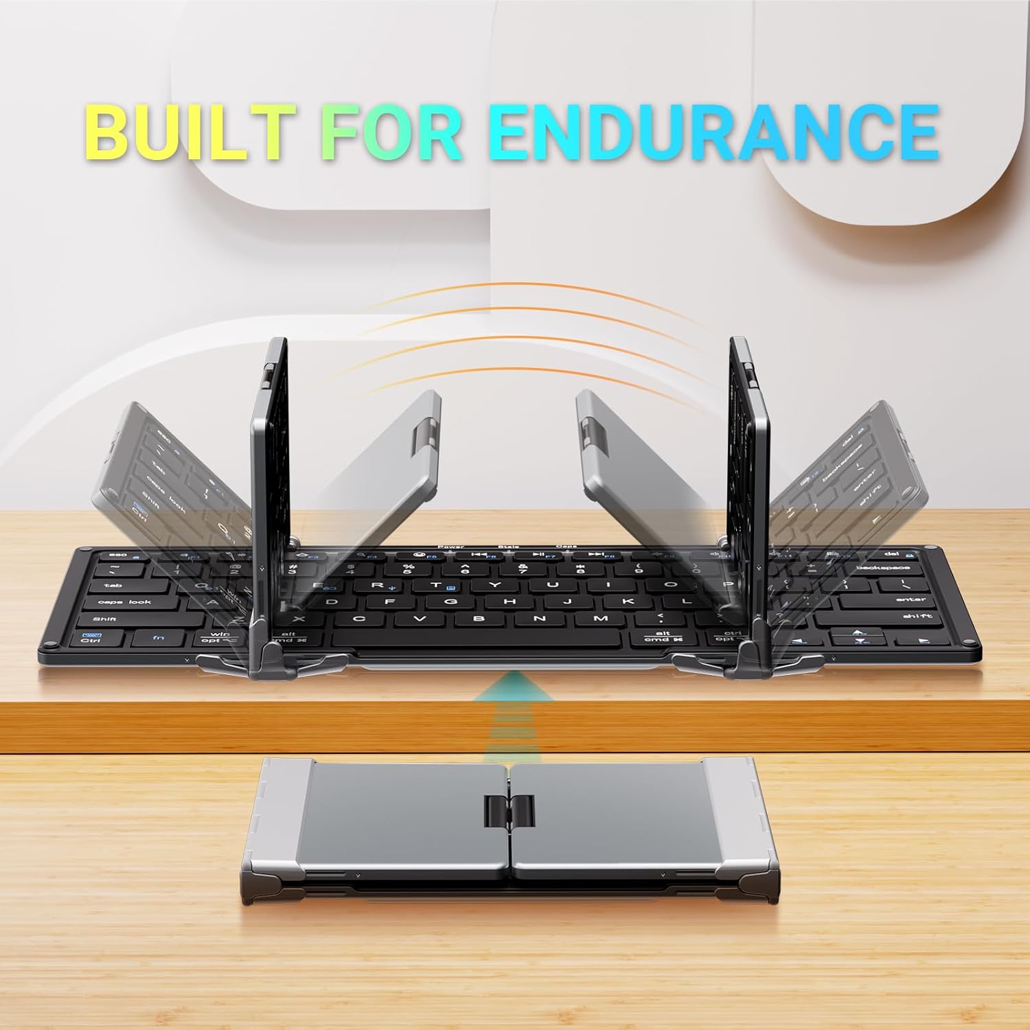 Laptop-Style Quiet Typing: Featuring responsive scissor switches and low-profile keys, our foldable Bluetooth keyboard offers a comfortable typing experience ideal for quiet environments like shared workspaces and meetings.
