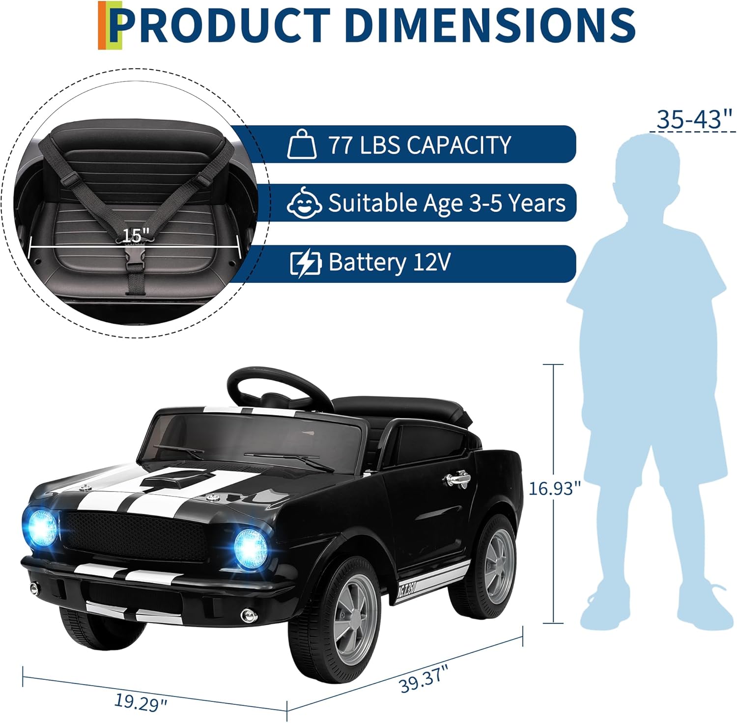Bring the legendary Shelby GT350 to your driveway with this officially licensed kids electric car. Combining racing heritage with child-safe design, this 12V powered ride on toy delivers an unmatched combination of performance, safety, and entertainment.