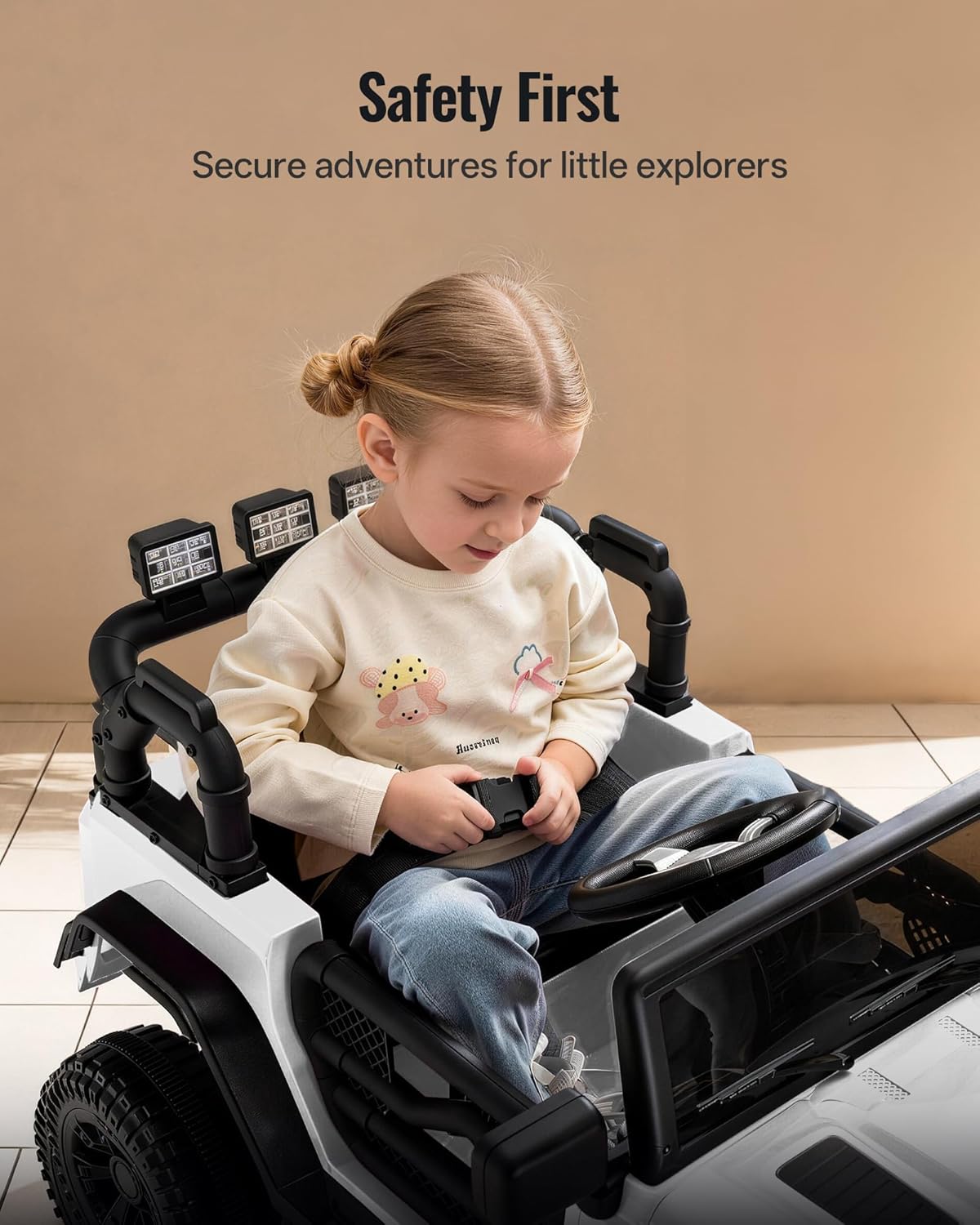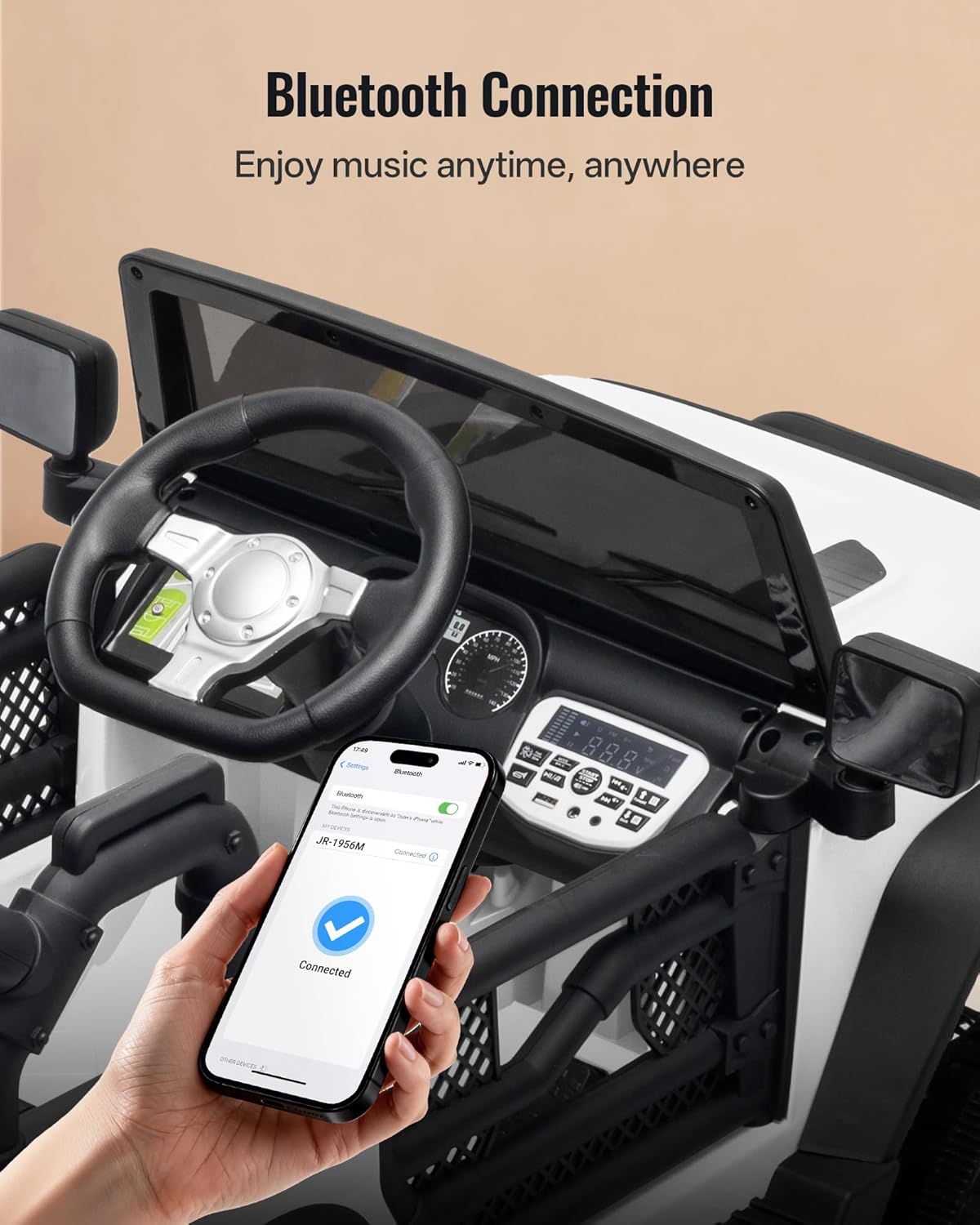 Parent Remote Control: The parental remote control lets you intervene when needed, ensuring a safe and joyful shared driving experience. You can also connect your phone to the electric car for kids via Bluetooth and play your child’s favorite music to make every ride more enjoyable.