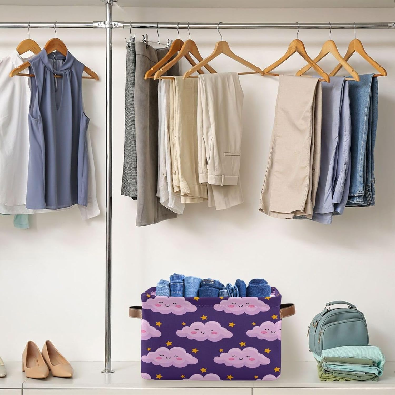 Portable Design – The Cloud basket for organizing can be easily folded when not in use, which can be quickly unfolded when in use, and has PU leather handles on both sides for easy and comfortable transportation