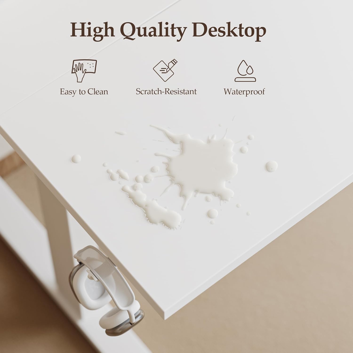 【Smooth & Stable Height Adjustment】Powered by a reliable motor, this desk adjusts smoothly between 28″–45″ with low noise (<55dB). Two programmable memory presets allow quick transitions between sitting and standing.
