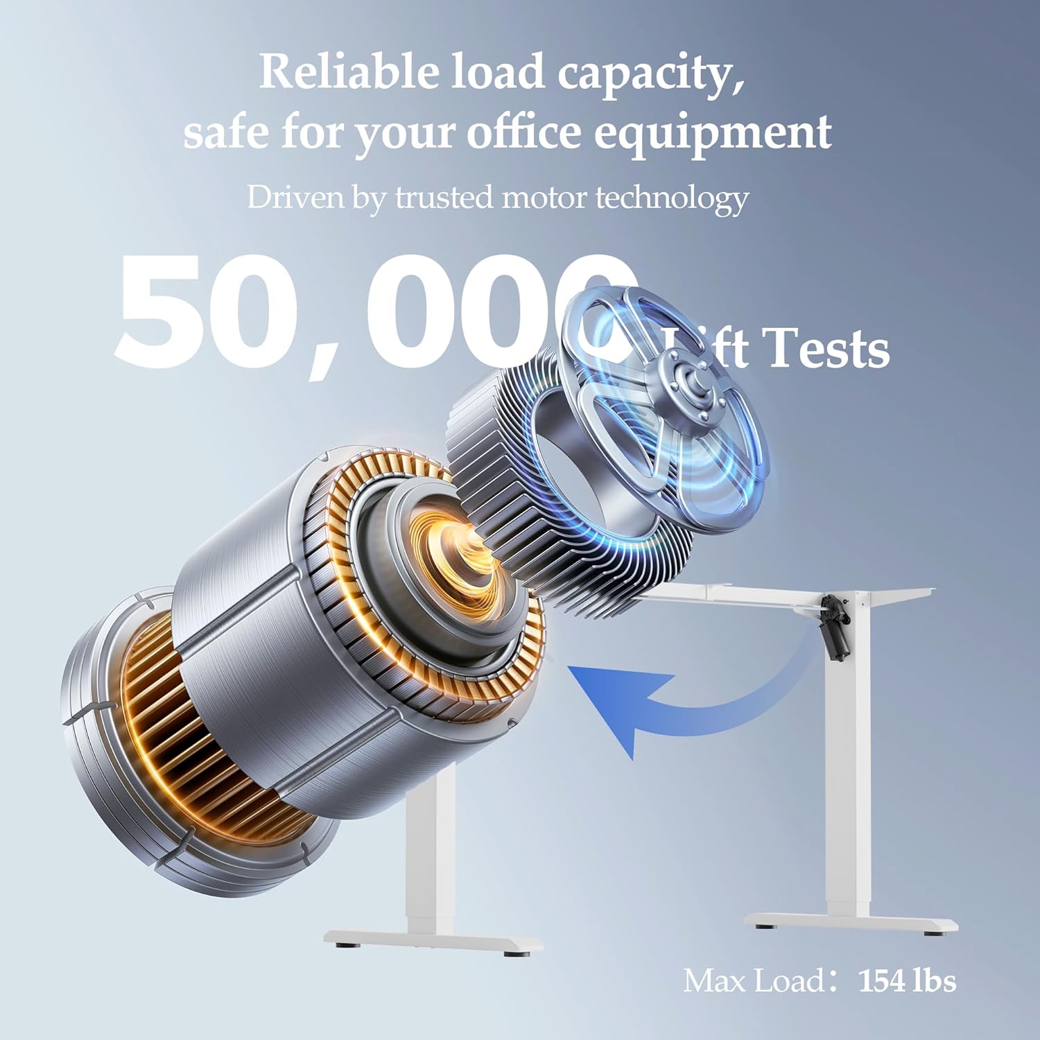 【Sturdy Construction, 154 lbs Load Capacity】 Built with a durable steel frame and high-strength lift system, this desk supports up to 154 lbs, ensuring long-term stability for monitors, laptops, and workspace essentials.