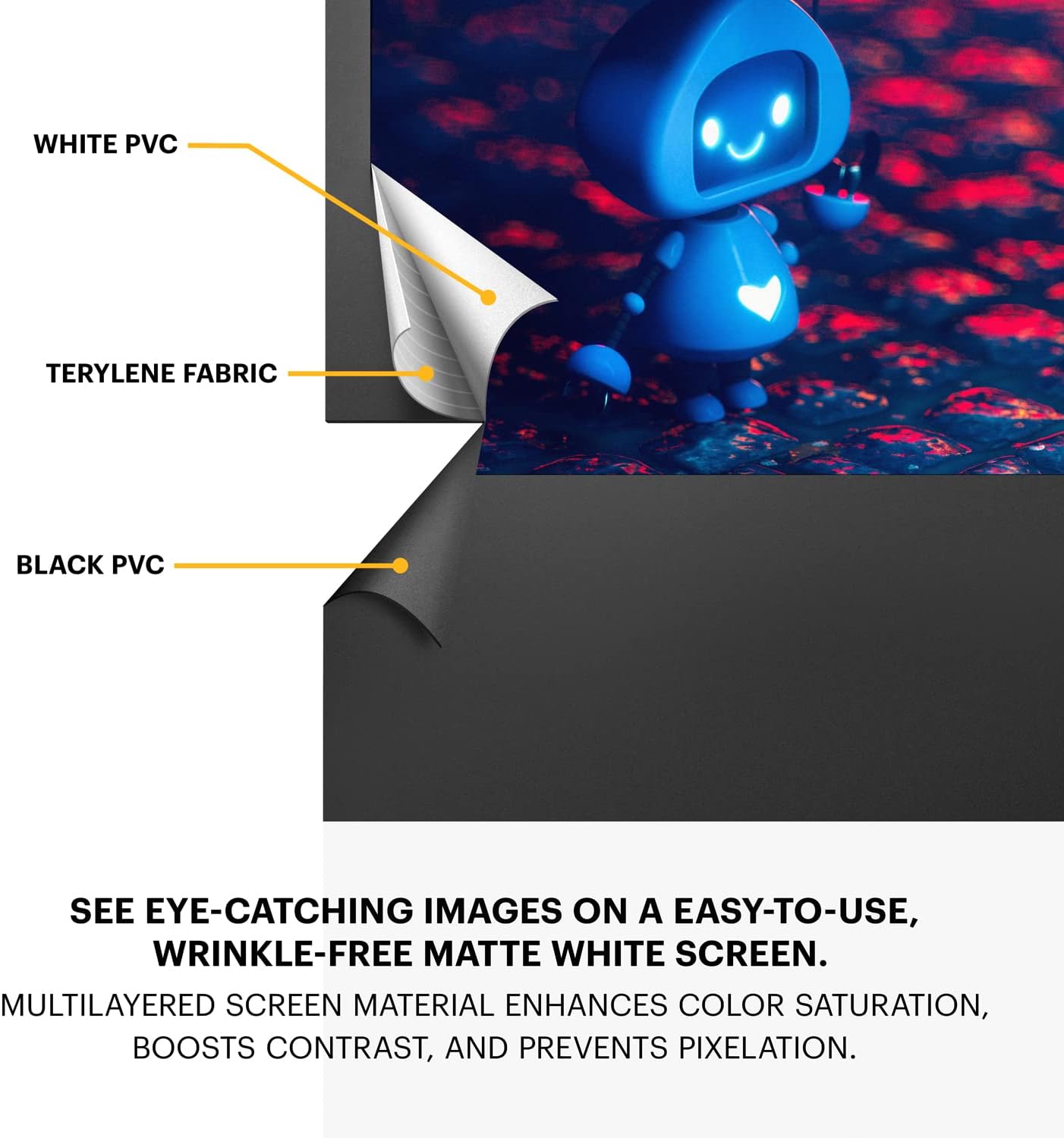 INCREDIBLE 80” WIDESCREEN VIEWING | Just Like the Jumbotron! Flat Matte White PVC Screen Features Versatile 160° Viewing Angle for Crystal Clear Imaging from All Sides | Multi-Layer Design Includes Black Backing, Polyester Terylene Diffusion Fabric & PVC Film for Exceptional Durability & Resistance to Wear, Tear & Wrinkling