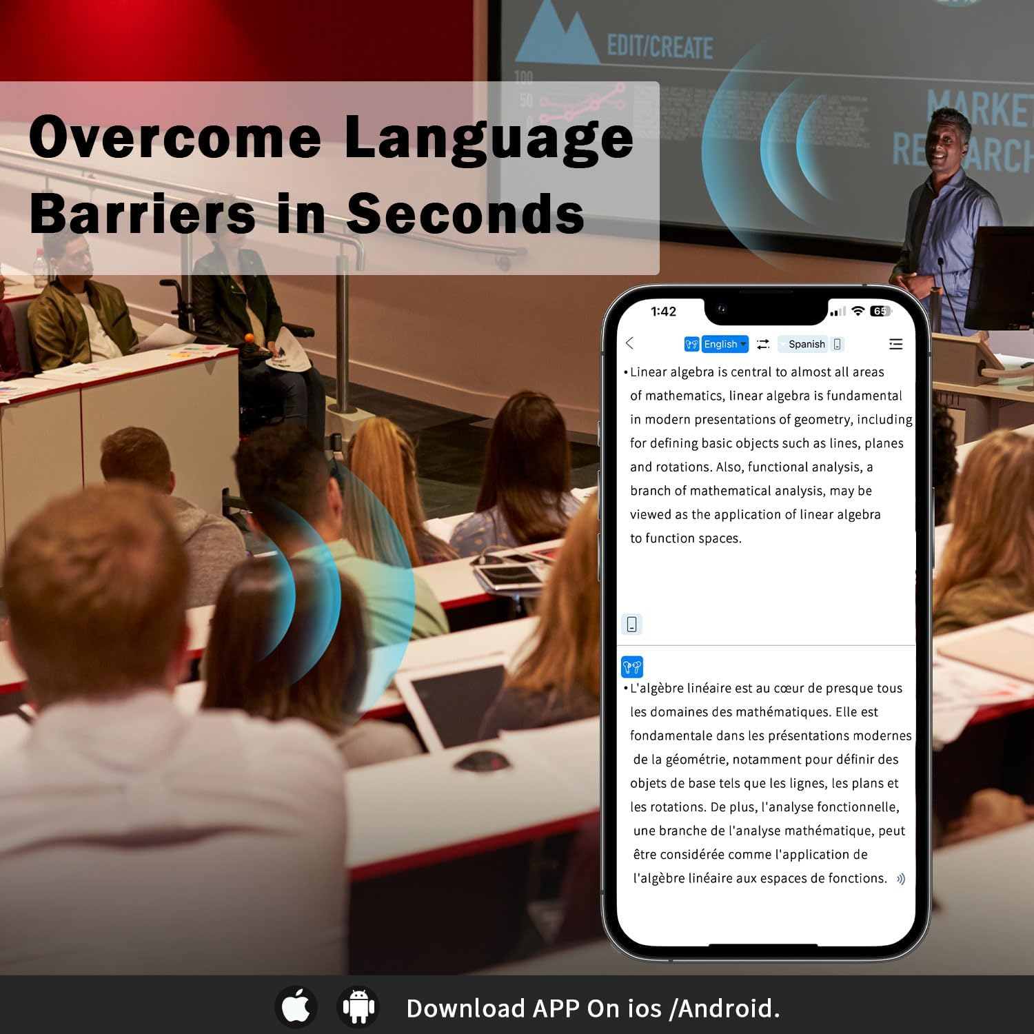 【Crystal-Clear Sound and Noise Cancellation】Experience exceptional sound quality with high-definition stereo audio and active noise cancellation. Whether you’re navigating a busy airport or attending a crowded business event, the earbuds ensure clear, natural translations even in noisy environments, so you never miss a word—”even in the busiest of city streets” or “during a hectic conference call”.