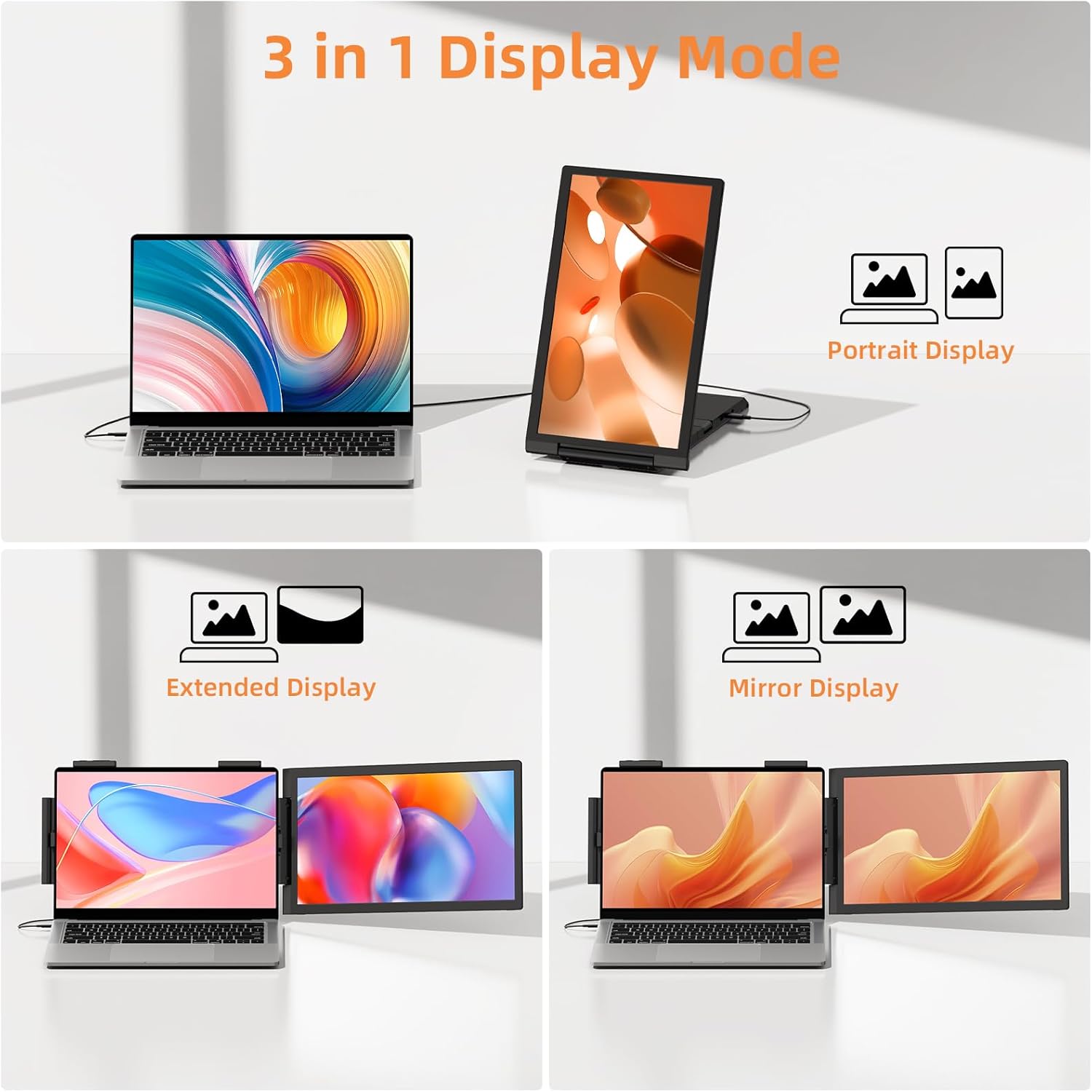 【Portable & Convenient Design】This ultra-lightweight, laptop screen extender monitor portable, weighting just 1.98 pounds and including a portable bag for easy folding and unfolding, eliminates the need for a separate stand, It slides into the carry bag(package includes) easily, so you can take it Home, Travel, Office, Coffce Shop, Hotel, Airport, Courtyard, Etc. Perfect for people who work and play on the go or from the home.