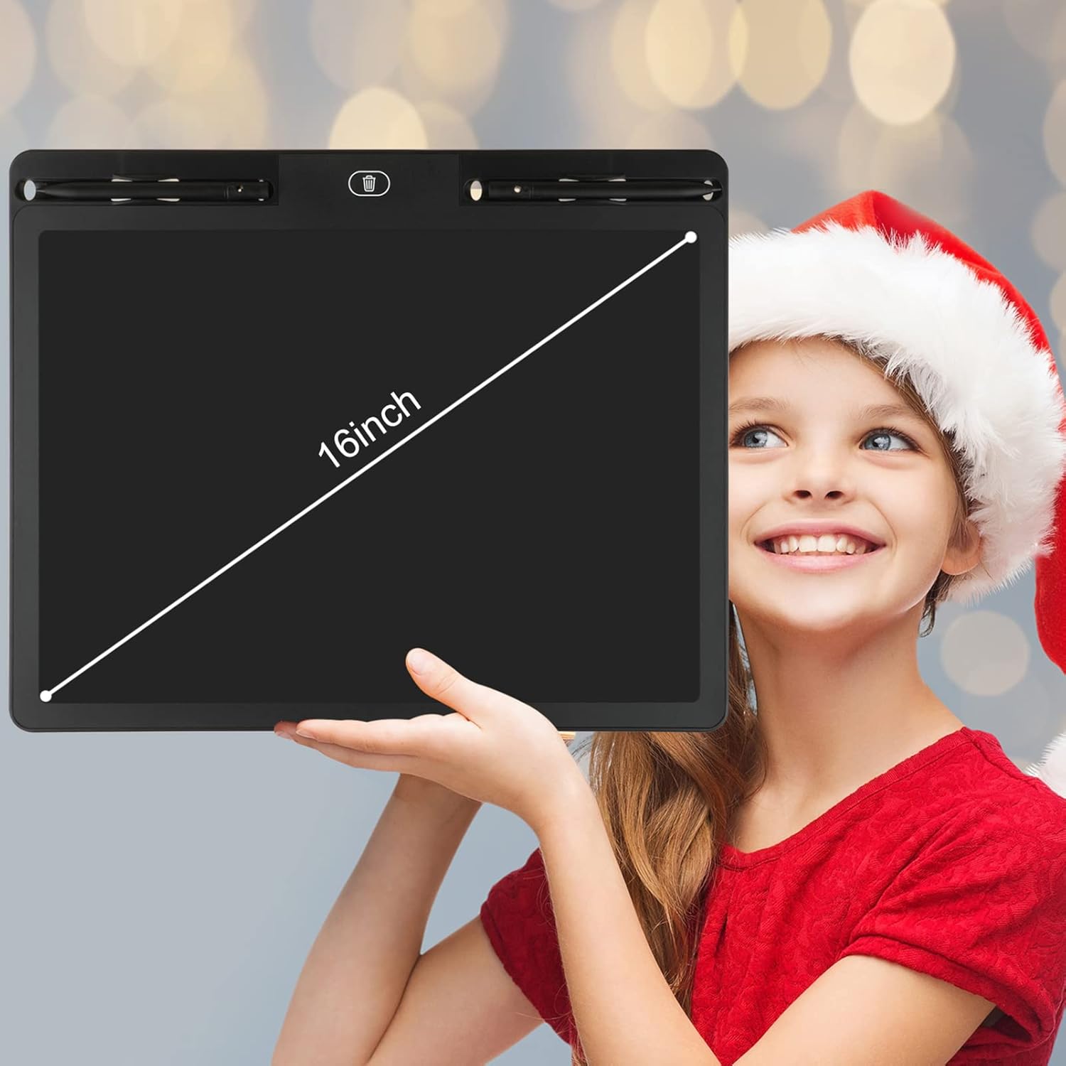 PRACTICAL: there is a humanized lock screen switch function in our LCD writing tablet, once the screen locked, one-click clear function will be lost to prevent creative pictures from being deleted by mistake, the function of one key clear will be restored as long as the screen is unlocked at the back, the size of 16 inch electric writing pad is 13.8inches x 11.1inches (35cm x 28.2cm), extra large area can hold more content, so practical and convenient it is