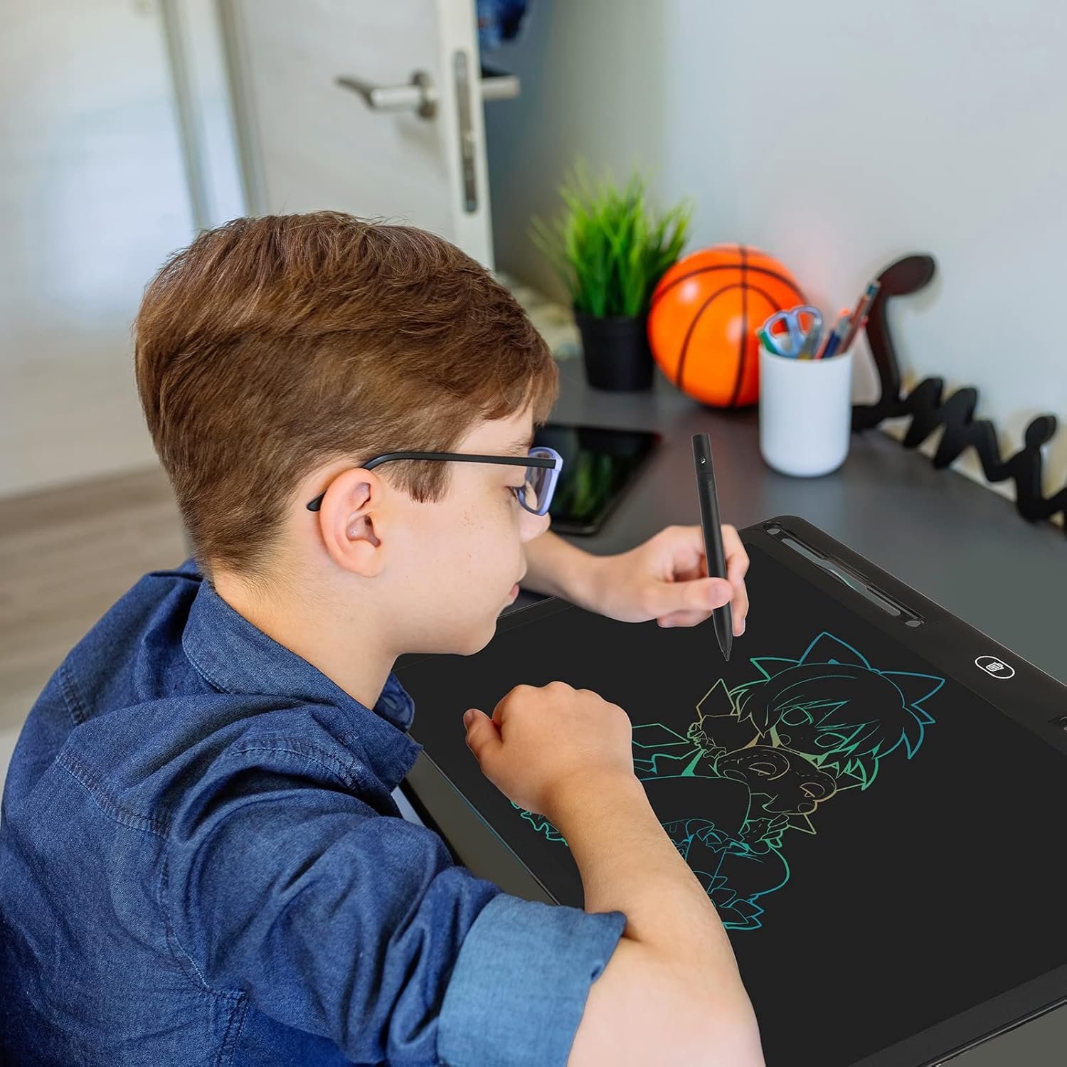 ADVANTAGES: unlike using normal blackboard, the chalk is dusty and has a risk of accidental ingestion, and the blackboard is not easy to carry, our electronic writing board has the feature of the thickness of the lines can be changed as you like, the battery life is 12 months with low consumption, waterproof, drop-resistant and wear-resistant, one-click erasing and reused, LCD soft light eye protection screen, thin and easy to carry