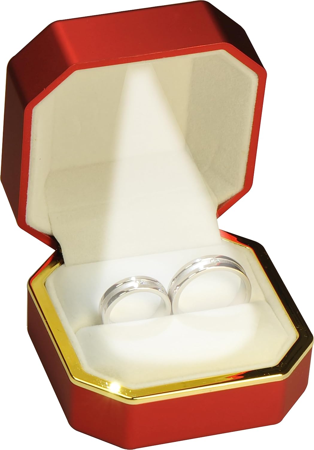 HIGH QUALITY CRAFTMANSHIP FINISH: This LED ring gift box is well made with high quality matte red bungundy color baking varnish finishing and the LED light is mounted on top with a perfect angle, this LED ring jewelry box will make your jewelry look luxury and special when you present it to your sweet heart.(jewelry not included)