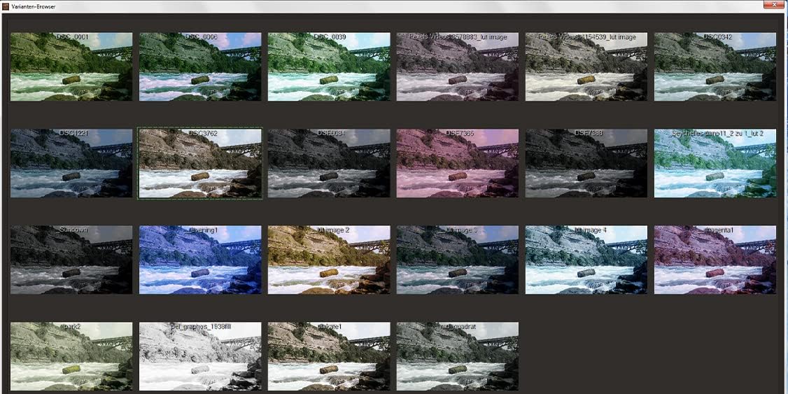 With the variant browser of LUT Video#1 you always have an overview of your created LUT photo styles/filters and can select the desired look directly from there.
