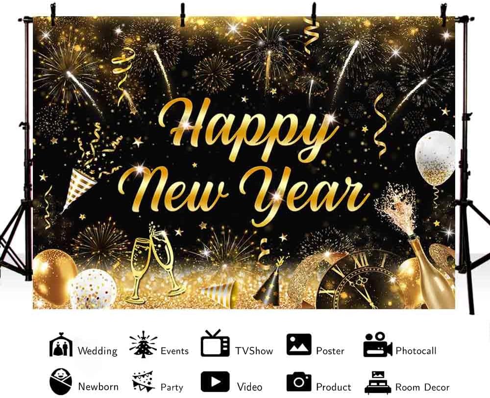 2025 Happy New Year Banner Decoration: You will get 1 pc 94.48 in width, 70.8 in height new year banner, with “HAPPY NEW YEAR” on it; this black and gold banner will create a great party scene for the photo