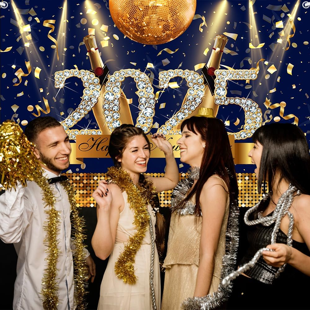Feature: You will get a gold and blue glitter 2025 Happy New Year backdrop. Is a beautiful decoration for your New Year themed party, it will be the focus of everyone’s attention, create a grand festive atmosphere for you, let Your 2025 stands out, This 2025 New Years banner is the perfect New Years party gift. Make your New Year’s party decorations memorable and fun with our Happy New Year 2025 Decorations.