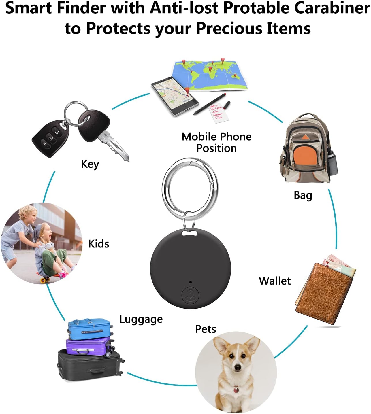 Widely to Use: The key item locator is a great anti-lost alarm reminder to help you search and locate items you always misplaced, you can hang on the finder toyour phones, keys, bags, umbrellas, pets, dogs,cats, wallets, purses, luggage,dog&cat pet collar and other important items, convenient for you to find them quickly and easily, bringing a lot of convenience and help you avoid any losses to your life; The tracking range is about 90 feet.