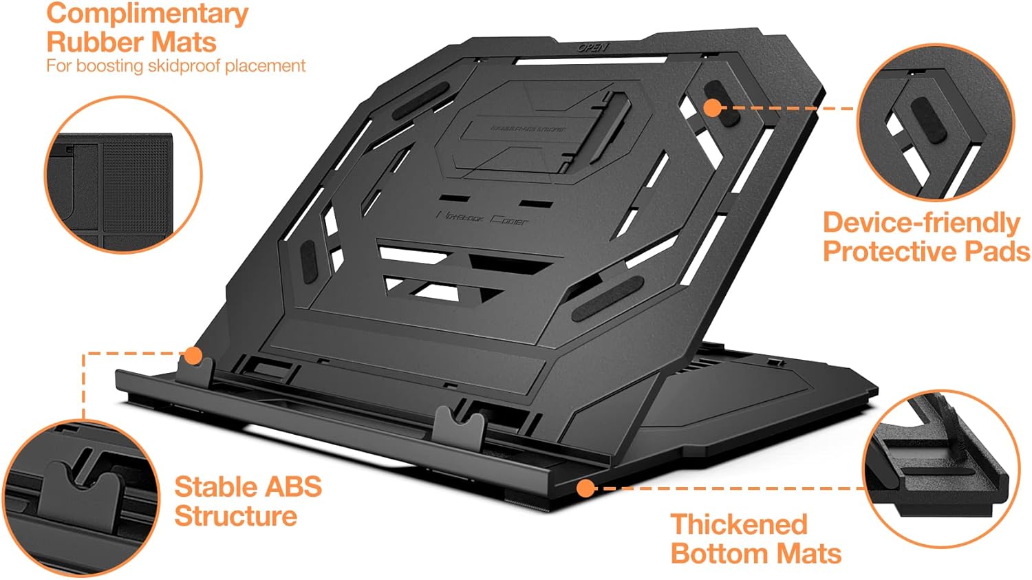 6-level Adjustable Angles Pocket-Size, Lightweight & Portable Ultra-soft & Comfortable, Multi-pocket, Sleepy Owl Shape Excellent Heat Dissipation, 2 Extended Stands, Foldable Design 210° Adjustable Viewing Angles, Support Charging, Silicone Cushion Slim Profile, Foldable, Adjustable Angles