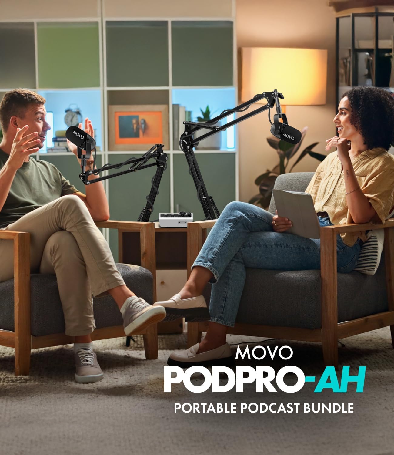 PODCAST EQUIPMENT BUNDLE FOR 2: The Movo PodPro-AH includes the dual channel MDX-2 usb audio interface, 2 CastMic XLR dynamic microphones, and 2 pairs of studio headphones. The perfect complete podcast kit for content creators on the go.