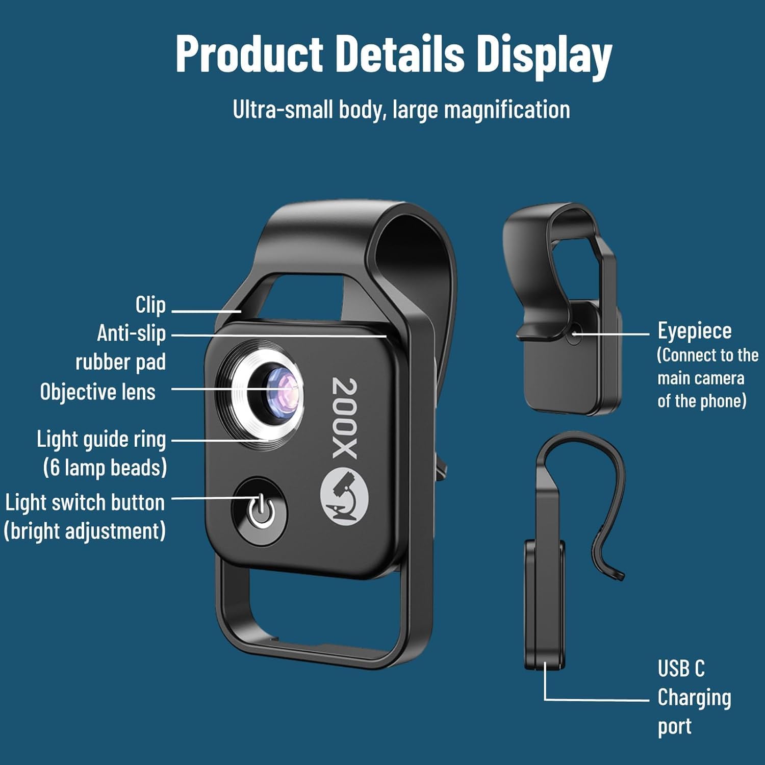 【No APP Required】Different from other digital microscope, our Nanozoom does not need any APP to work with, once clip it on your phone,a whole new micro world will be opened up in a minutes.