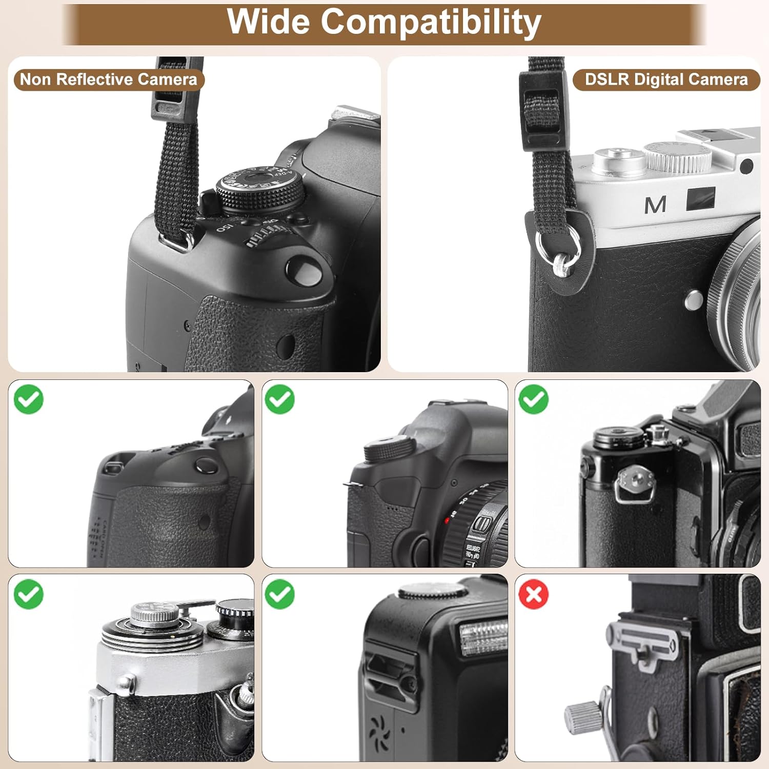 SUITABLE FOR ALL CAMERAS: Our camera straps are extremely adaptable and offer two different attachment options to fit all types of cameras. We use a nylon strap and plastic buckle for DSLRs, while for mirrorless cameras, we use a round metal ring and cowhide pad for protection.