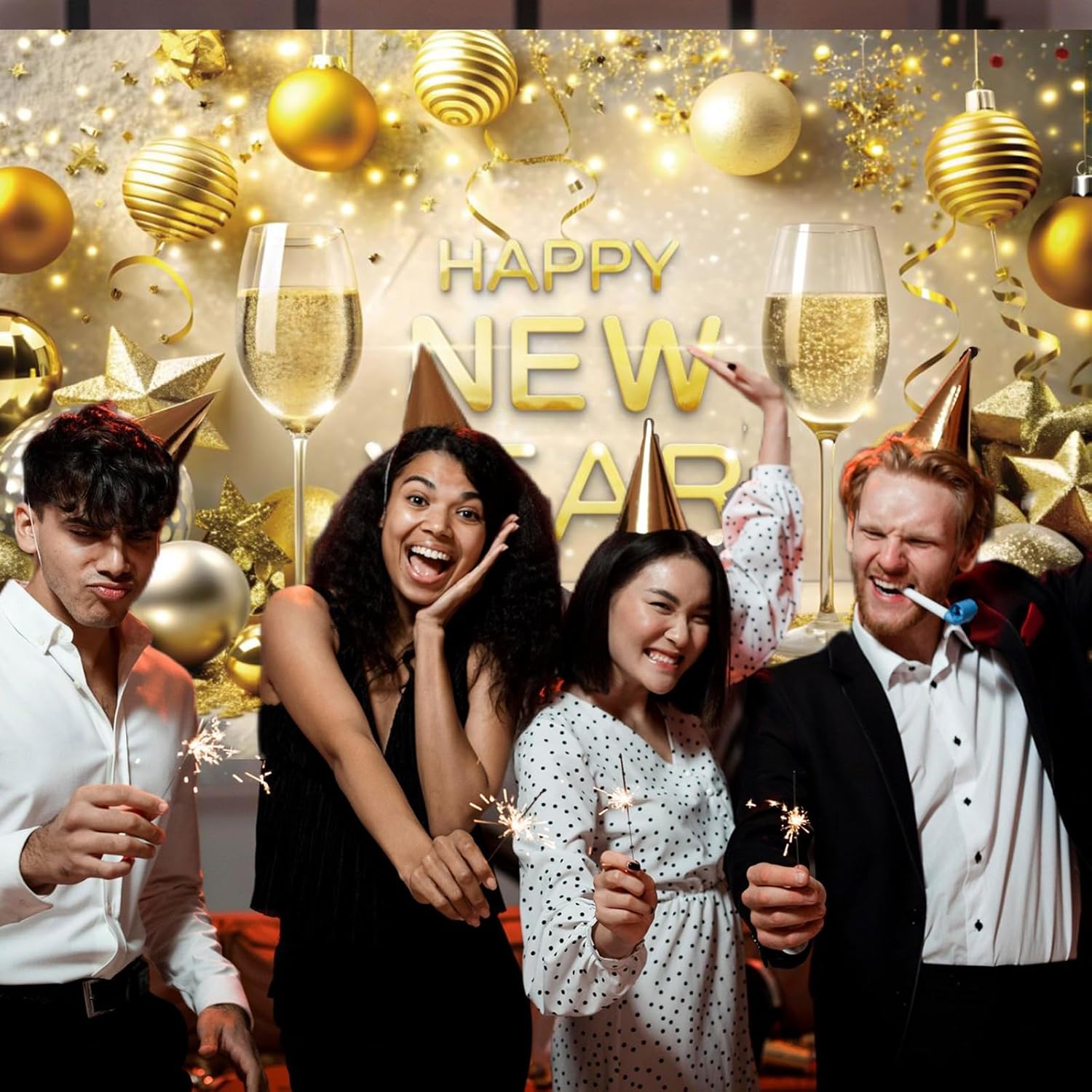 [Wide Application] – This bright happy new year backdrop can be used for the 2025 celebration party backdrop, photo studio photography, wall decor, dessert table decorations, candy bar banners, door hanging banners, reception, office celebration events, and so on. Which makes your party funny and impressive. Happy 2025!