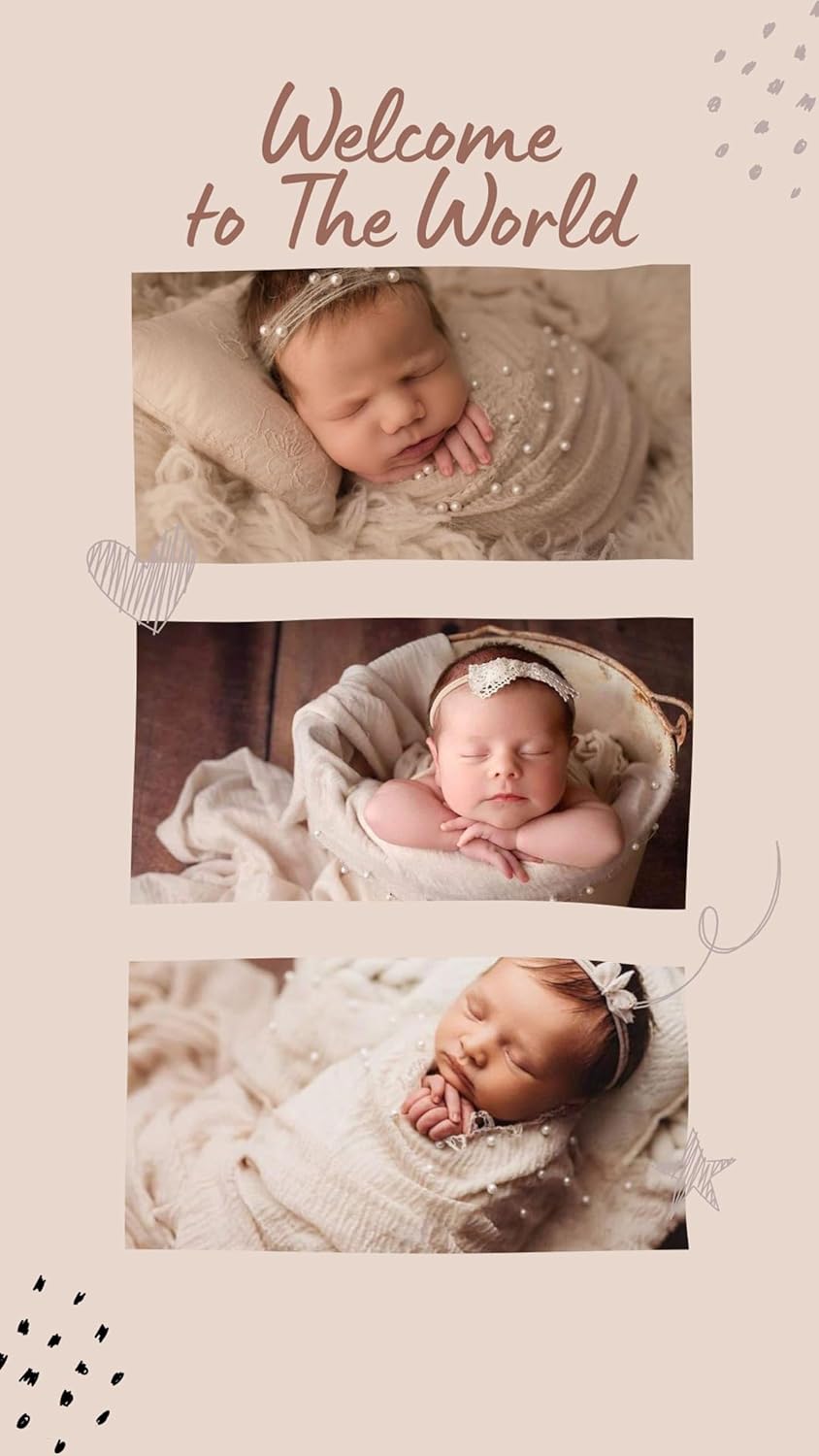 Splendid Design -The wrap is adorned with beautiful pearl accents, adding a touch of glamour to your baby’s photos. Perfect for a variety of photoshoot themes, including vintage and Boho styles, this wrap is a must-have for any newborn photography props collection.