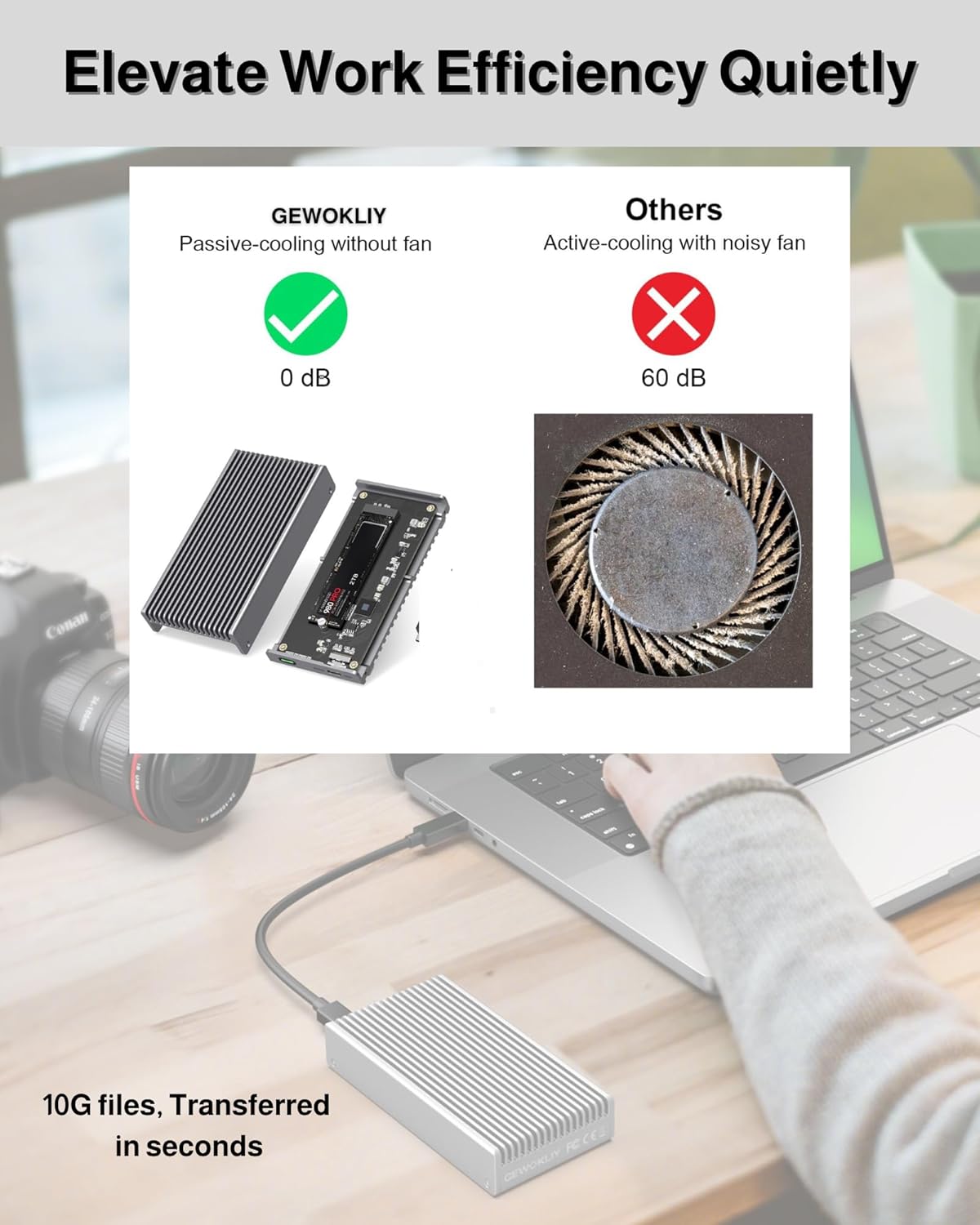40Gbps Breakneck Speedy NVMe Enclosure: Gewokliy Thunderbolt 4 M.2 SSD Enclosure fix the transmission speed of SSD up to 40 Gbps, which is adopted newest chip and built-in thunderbolt 4 cable tp ensure the maximum performace. Generally, the read speed reach at 2800MB/s while write speed at 3200MB/s. Make it possible to transfer 10G files within seconds. Elevate your work efficiency. The SSD adapter also compatible with Thunderbolt3/4, USB3.2/3.1/3.0 interfaces (Note: ONLY Thunderbolt4/3 interface to reach 40Gbps).
