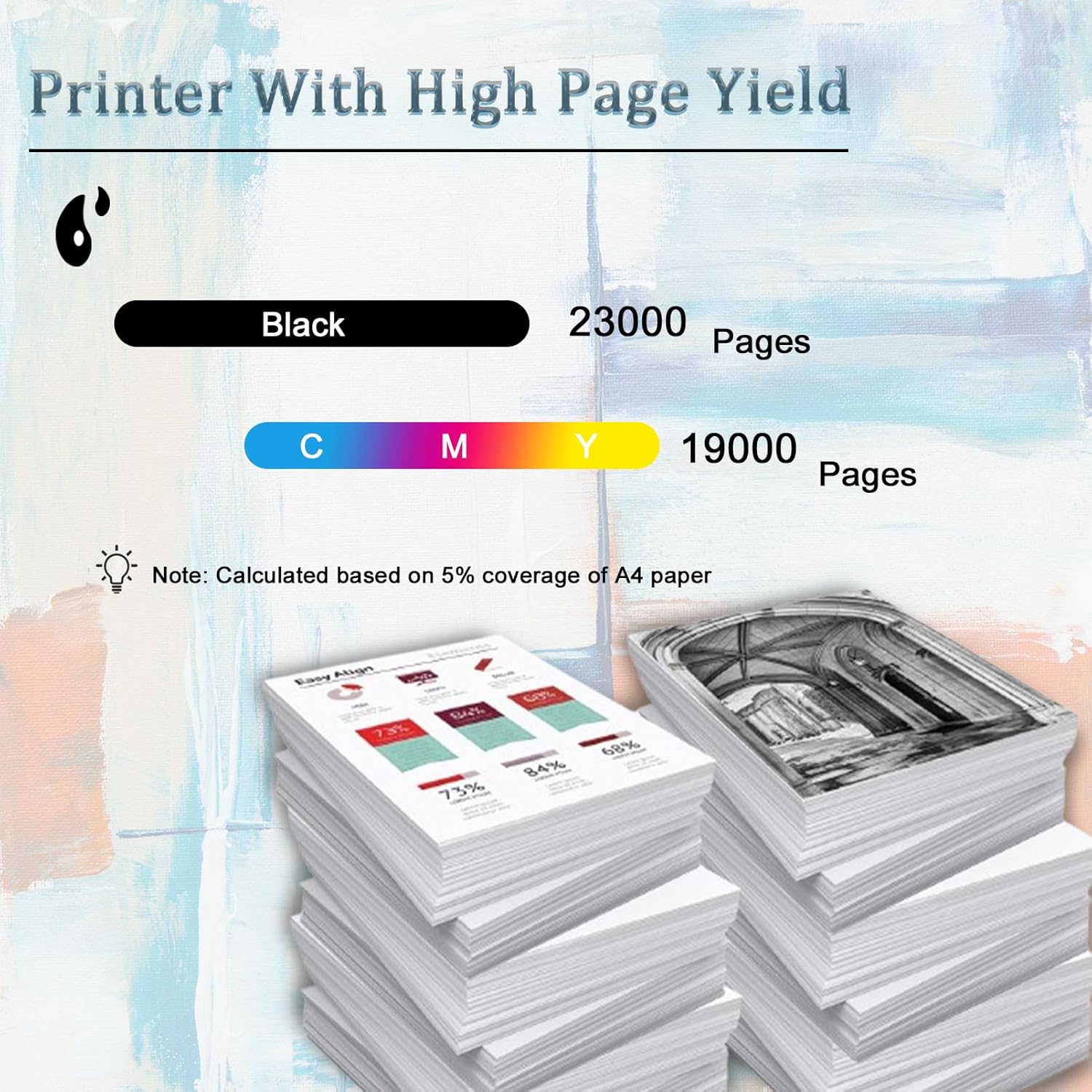 【High Page Yield】: NPG52 About 23000 pages per black toner cartridge;and each color Toner Cartridge can print 19000 pages;(At 5% coverage A4 paper)