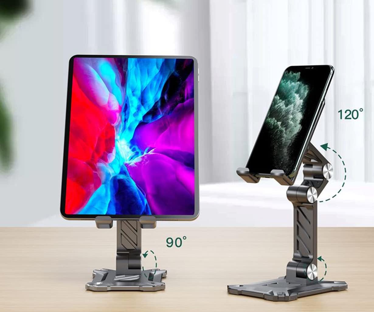 Phone Stand for Desk. Foldable Desktop Mobile Phone Stand with Angle Height Adjustable, Portable Office Cell Phone Holder, Cradle, Dock. Fits All 4.7-13in iPhone/Smartphone/iPad/Tablet.