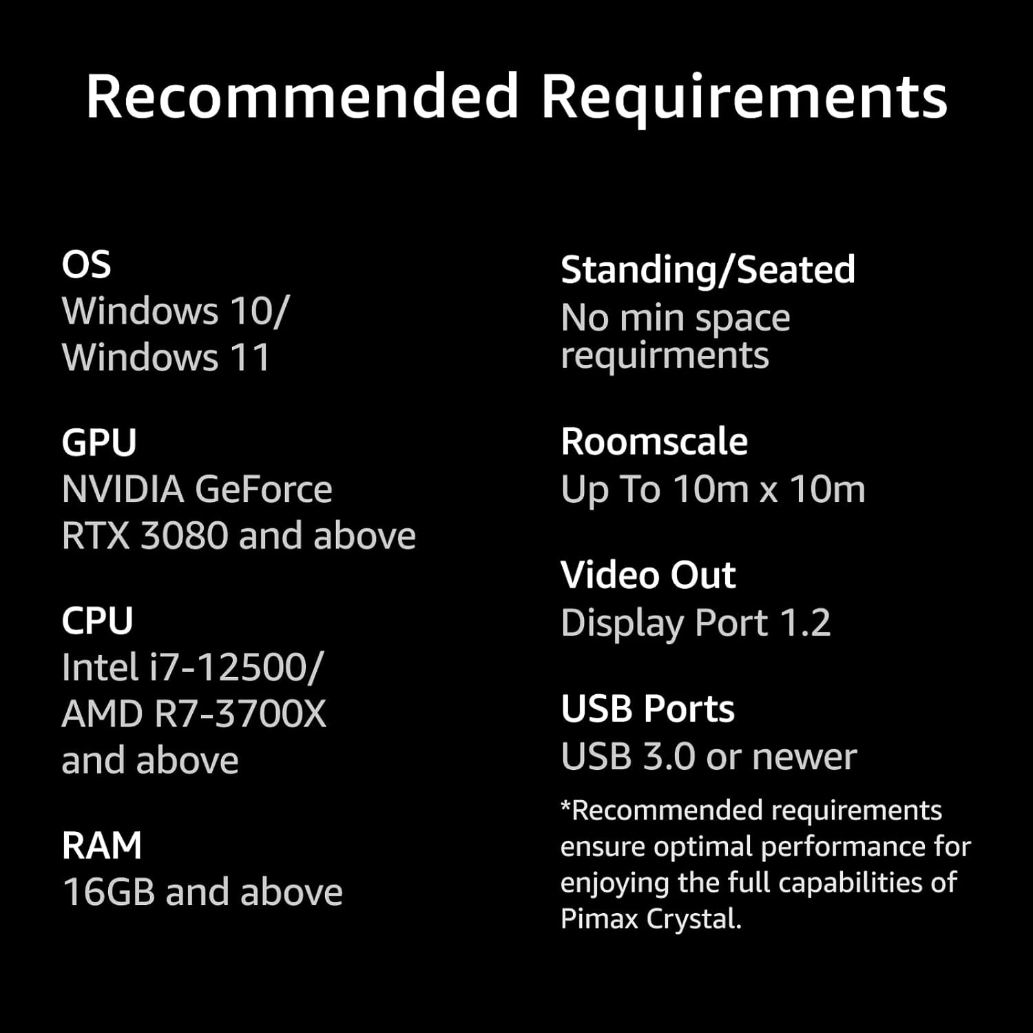 There's really no other direct substitute PCVR setup & I'm thankful Pimax tailored this offering out of the upscale Crystal platform (which had a ton of things I had no use for and won't miss) – excellent cost-reduction on their product planners' part. So nothing really close spec and performance-potential wise, so we have to hope Pimax sorts this one out since it's such a good fit for PCVR gaming where we are seated and tethered via fairly bulky DP cords. Grand scheme of things, the unit I received seems to have the potential (once sorted) to be a good solution; lenses seem pretty good and fairly stable software so far. Comfort is reasonable for 3-5 hours of gameplay, centering/reset and resolution similar to G2 (with less screen-door effect), and hopefully Pimax will have most of the kinks sorted out soon.