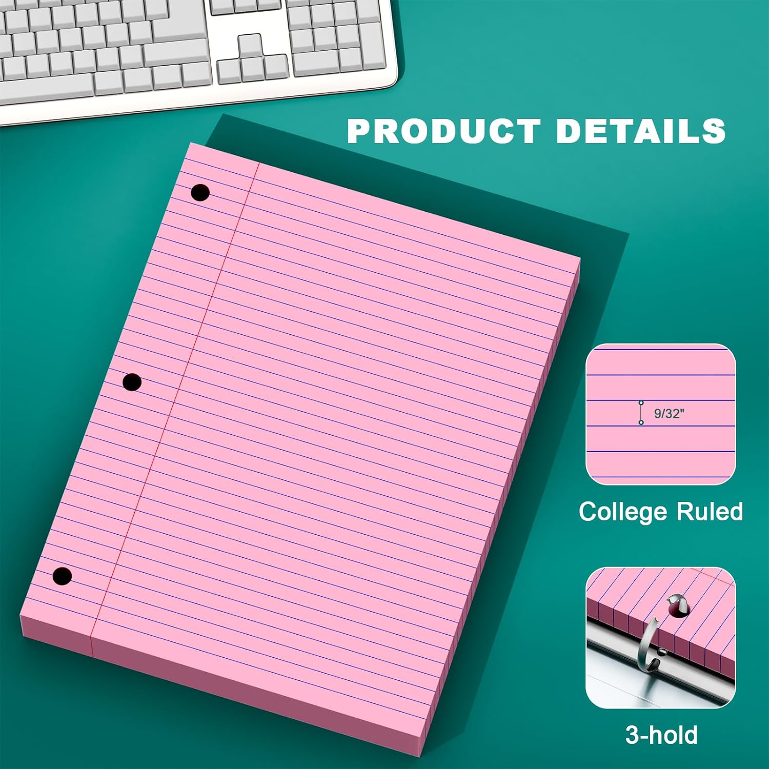 Standard 3-Hole Punched:Loose leaf note pads 8 x 10-1/2 has standard 3-hole punched notepads, which makes it ideal for 3-ring binders, pocket folders with fasteners, A4 notebooks, spiral notebooks, etc.