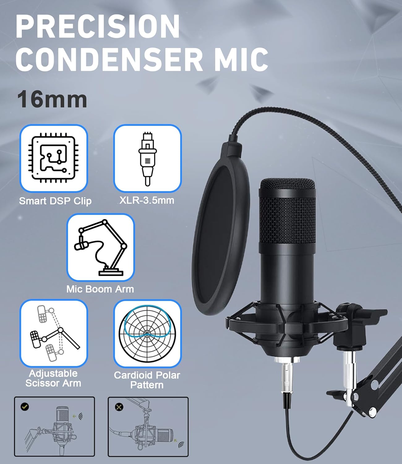 【Pro-Grade Streaming Microphones with Studio-Quality Sound】Each podcast mic features a cardioid pickup pattern, capturing sound directly in front of the mic while minimizing background noise. Built with a upgraded sound chipset, it maintains a 120kHz sampling rate and 24-bit bitrate, delivering high-resolution, broadcast-quality audio — perfect for vocals, narration, and live streaming. Pro tip: side-address—speak to the capsule side (round disc behind the grille), not the top
